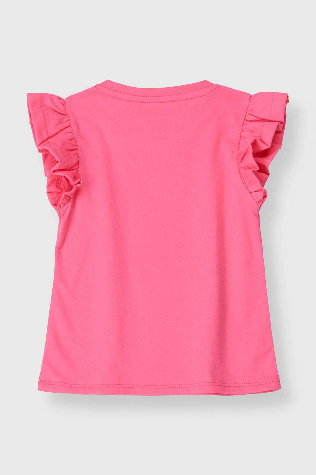 Straight Cut Shirt With Frayed Edge Ruffled Straps. Sparkle Unicorn Front Print 100% Cotton