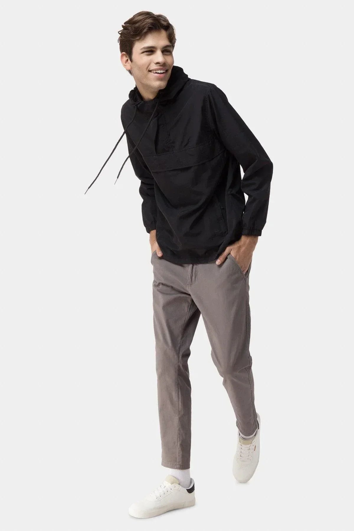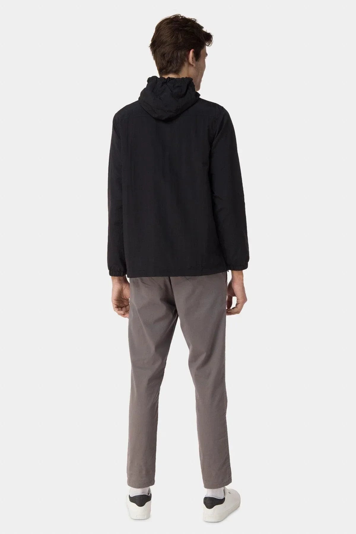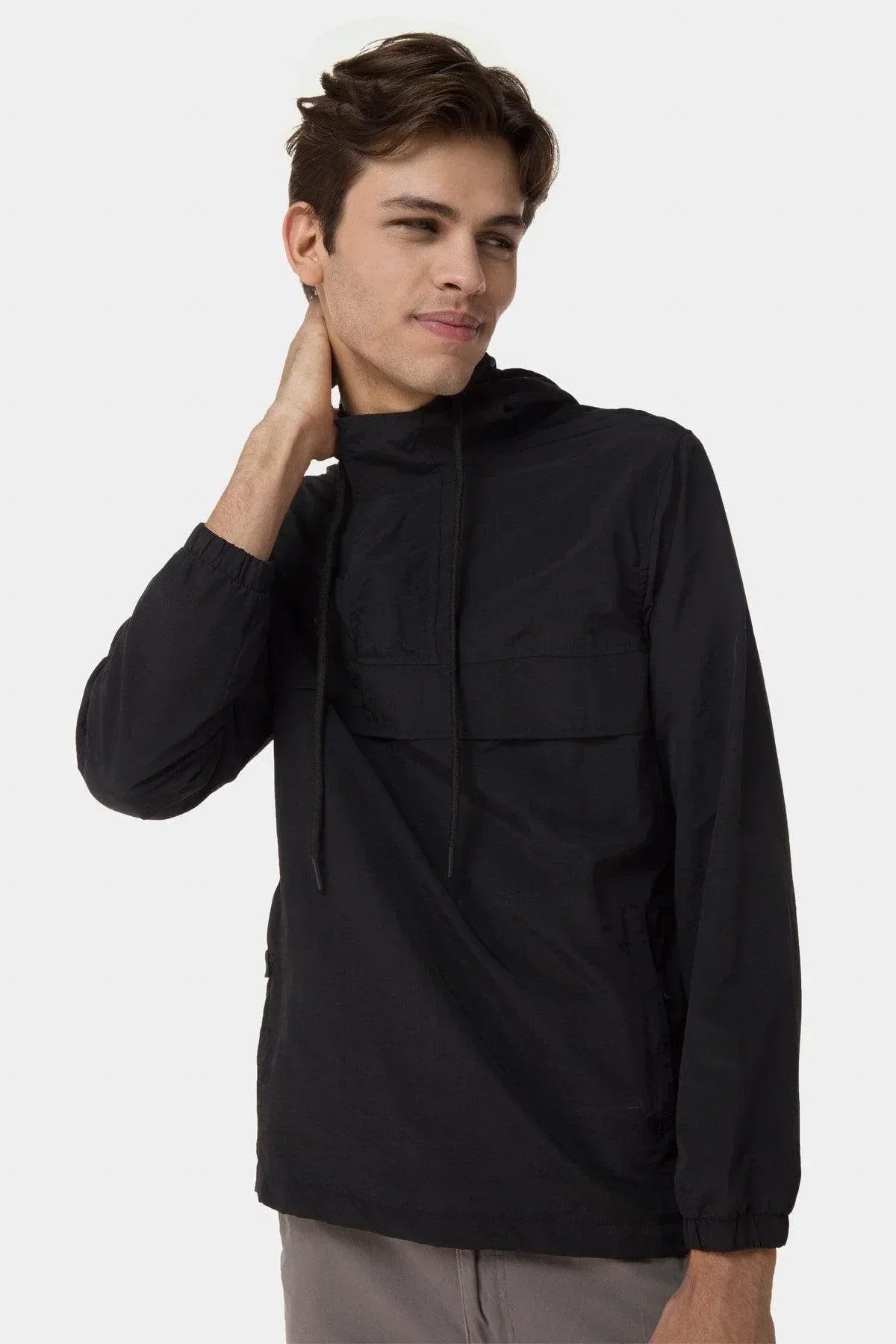 100% Nylon. Adjustable Hood With Drawstring. Center Flap Pouch Pocket. Elasticated Long Sleeves. Back Yoke