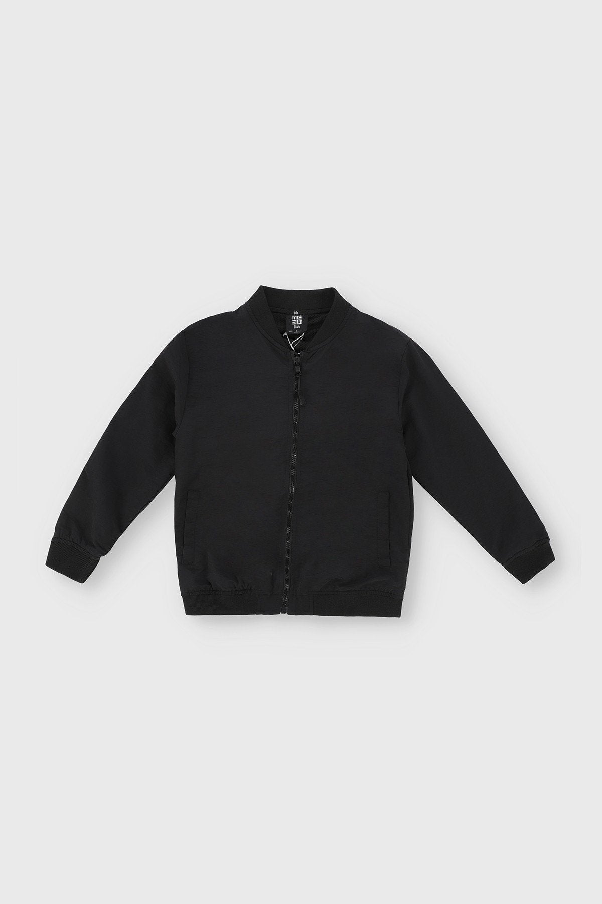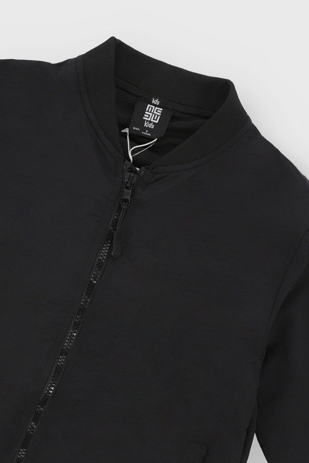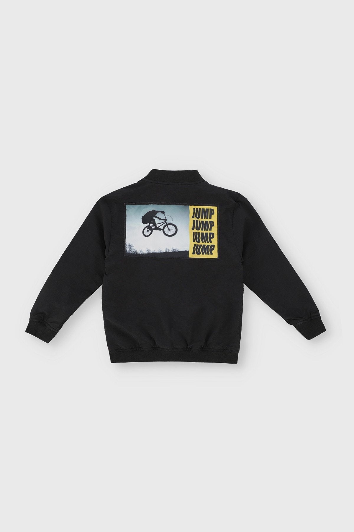 Solid Bomber Jacket With Low Cut Ribbed Collar And Zip-Up Closure. Ribbed Cuff Long Sleeves. Front Slash Pockets. Ribbed Hem. Patchwork On The Back