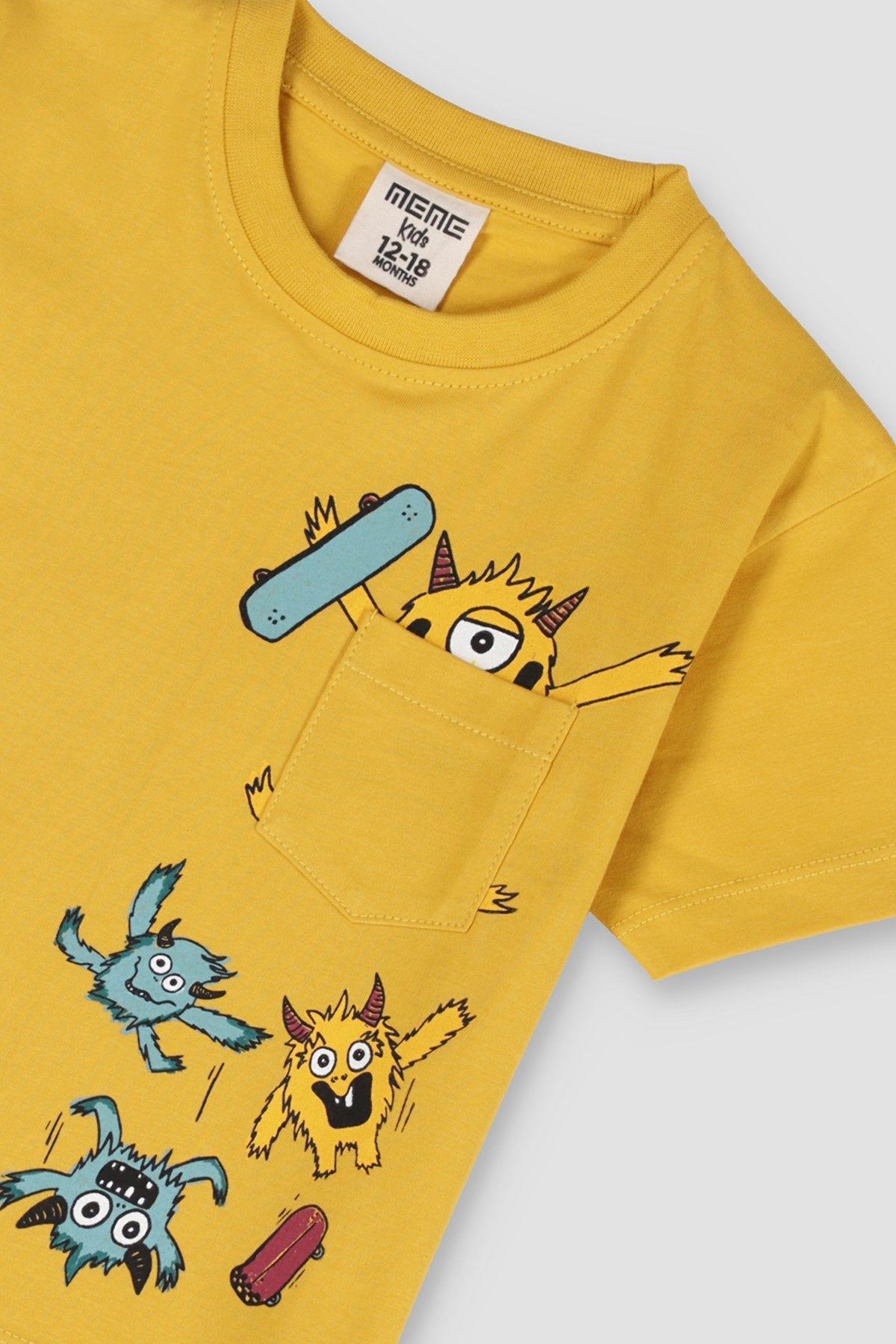 100% Cotton T-Shirt With Cartoon Prints On The Front And A Chest Pocket. Featuring A Round Neck And Short Sleeves.