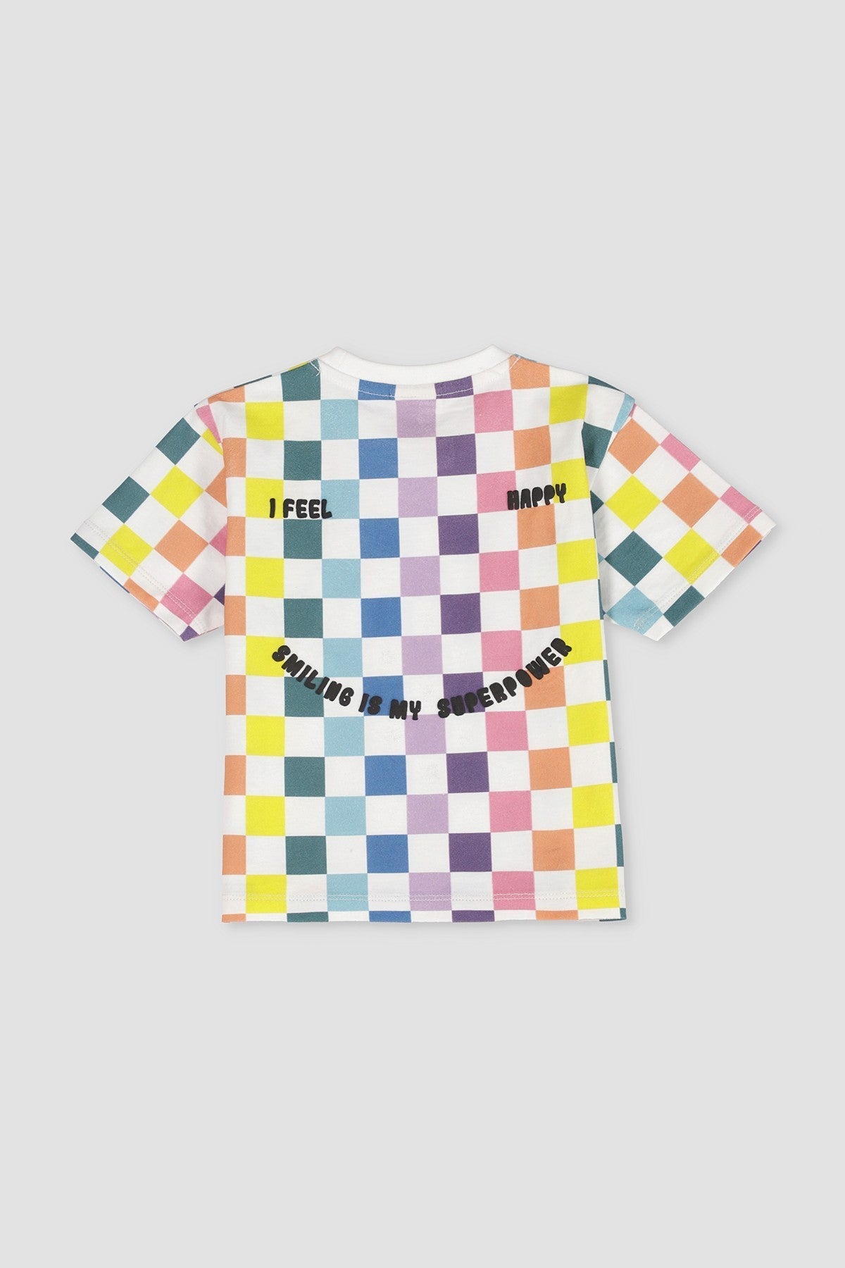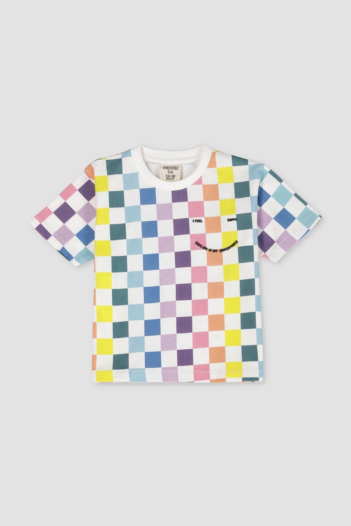 100% Cotton Colourful Checkered Shirt With Round Neck And Short Sleeves.