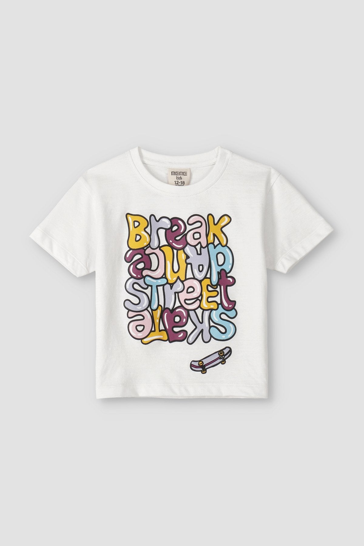100% Cotton Printed Crew Neck Short Sleeve T-Shirt With Illustration And Slogan