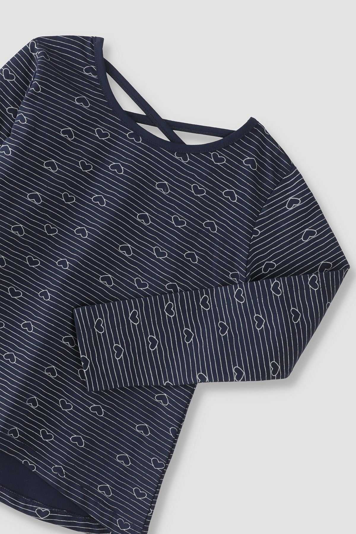 95% Cotton 5% Elastane. Knitted Crew Neck And Long Sleeve T-Shirt With Organic Stripe Print. Criss Cross Nape Line