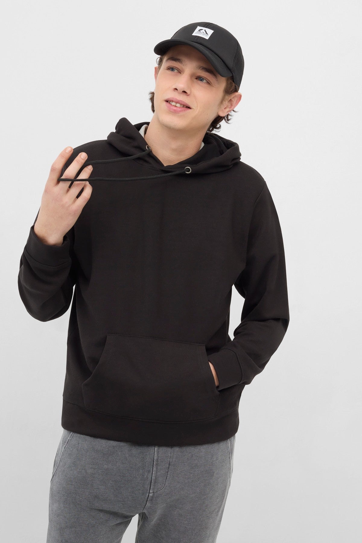 70% Polyester 25% Viscose 5% Elastane. Knitted Adjustable Hood With Drawstring. Long Sleeves And Kangaroo Pockets