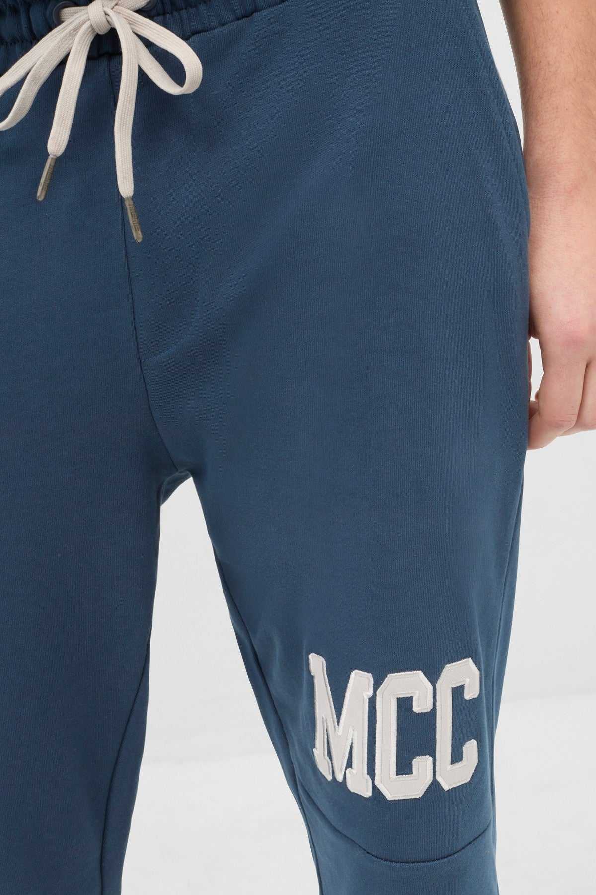 80% Cotton 20% Polyester. Elasticated Waistband With Contrast Drawstring. Rear Patch Pocket. Elasticated Hem
