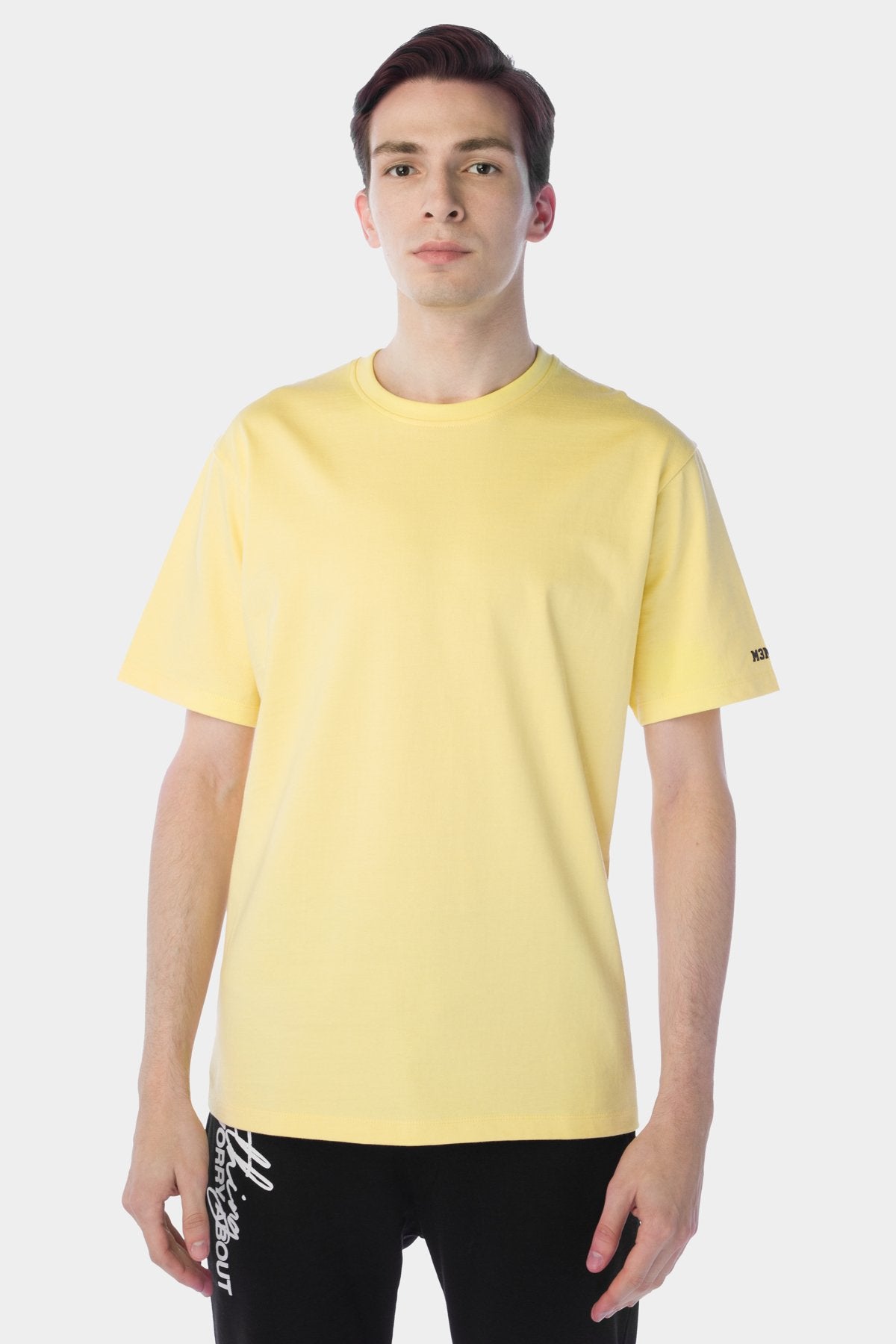 100% Cotton Casual Crew Neck Tee With Basic Half Sleeves. Logo Details On Sleeve Hem