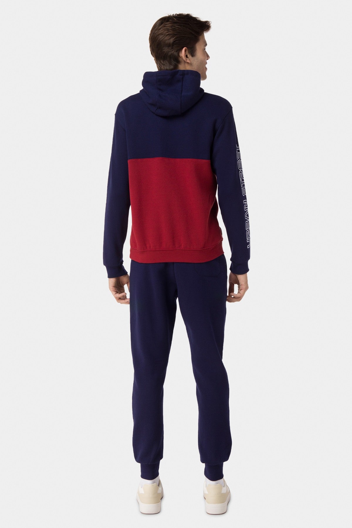 60% Cotton 40% Polyester Brushed Fleece.. Adjustable Hood With Long Sleeves. Typography On Sleeve And Chest. Ribbed Cuff And Hem