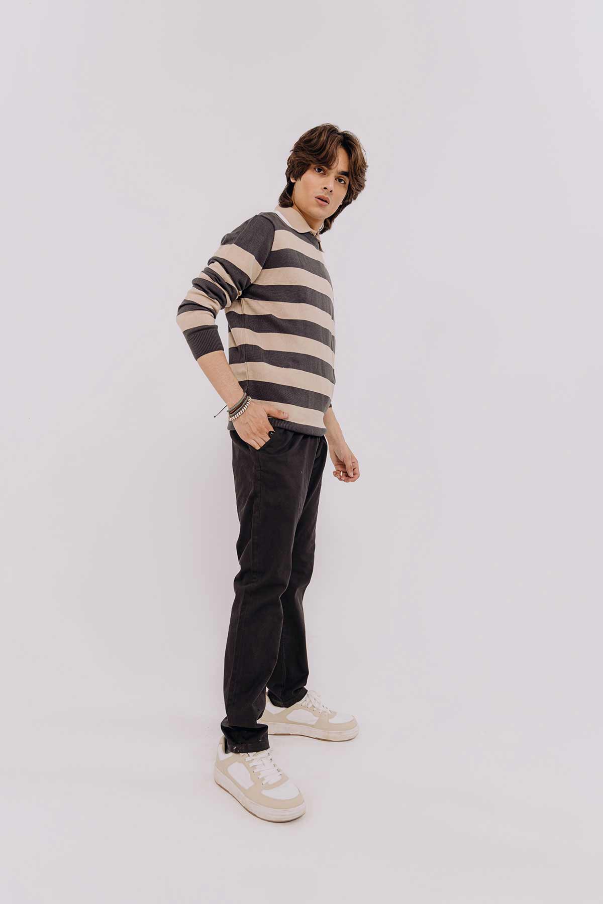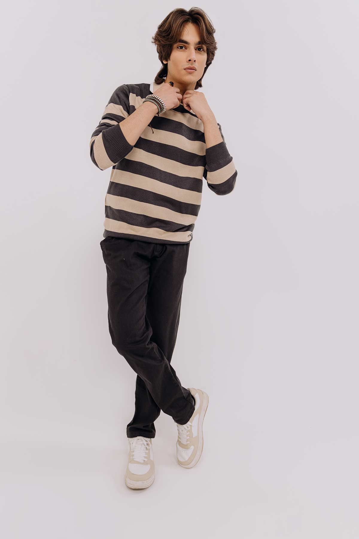100% Acrylic. Comfy Striped Sweater With Crew Neckline And Long Sleeves.