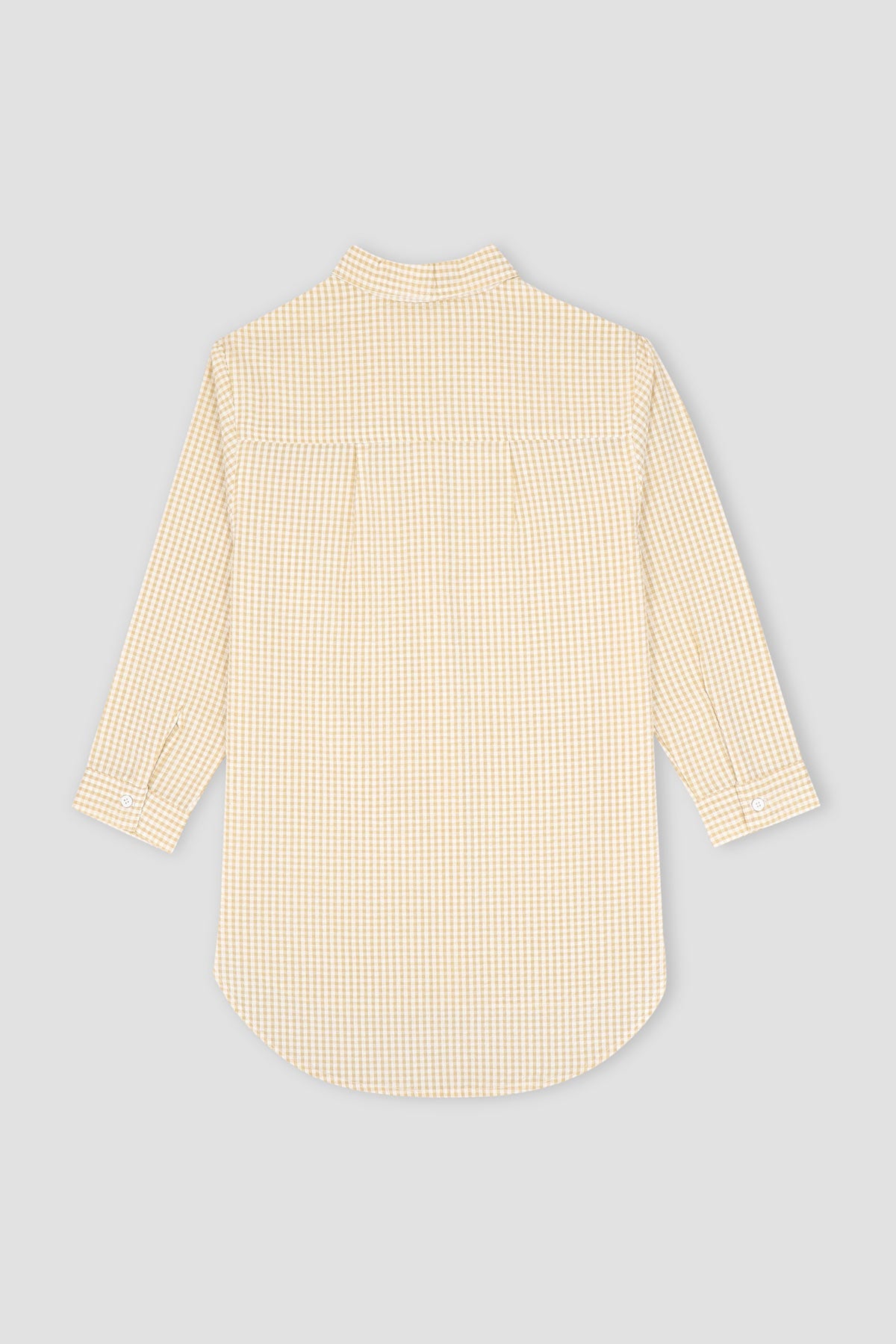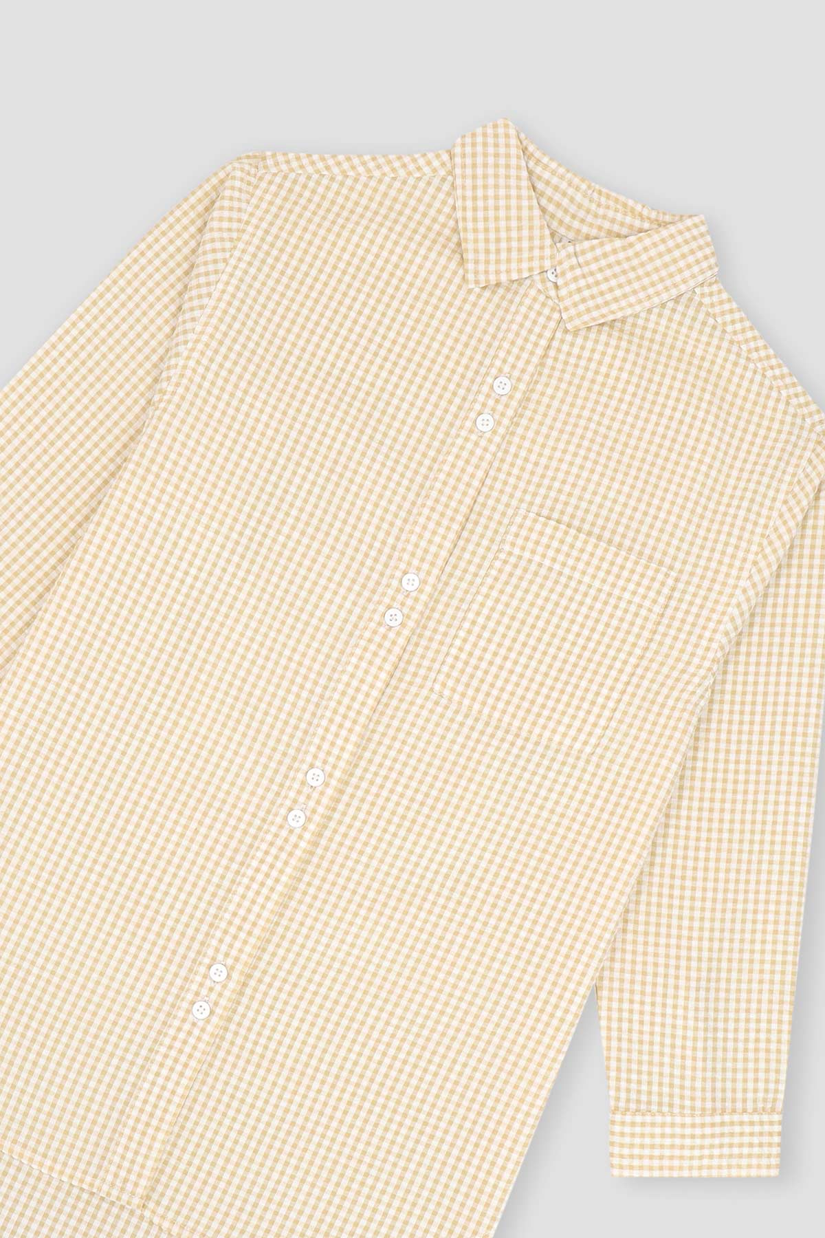 65% Cotton And 35% Polyester. Seersucker Fabric. Regular Collar With Button Down Closure. Long Sleeves Featuring Button Closure Cuff. Curved Hem