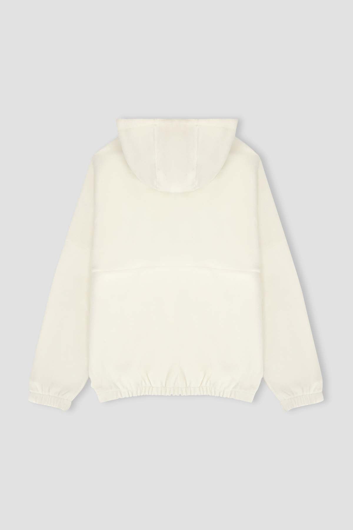 80% cotton 20% polyester. cozy pullover sherpa hoodie with drawstring hood. featuring front kangaroo pocket and drawstring waistline.