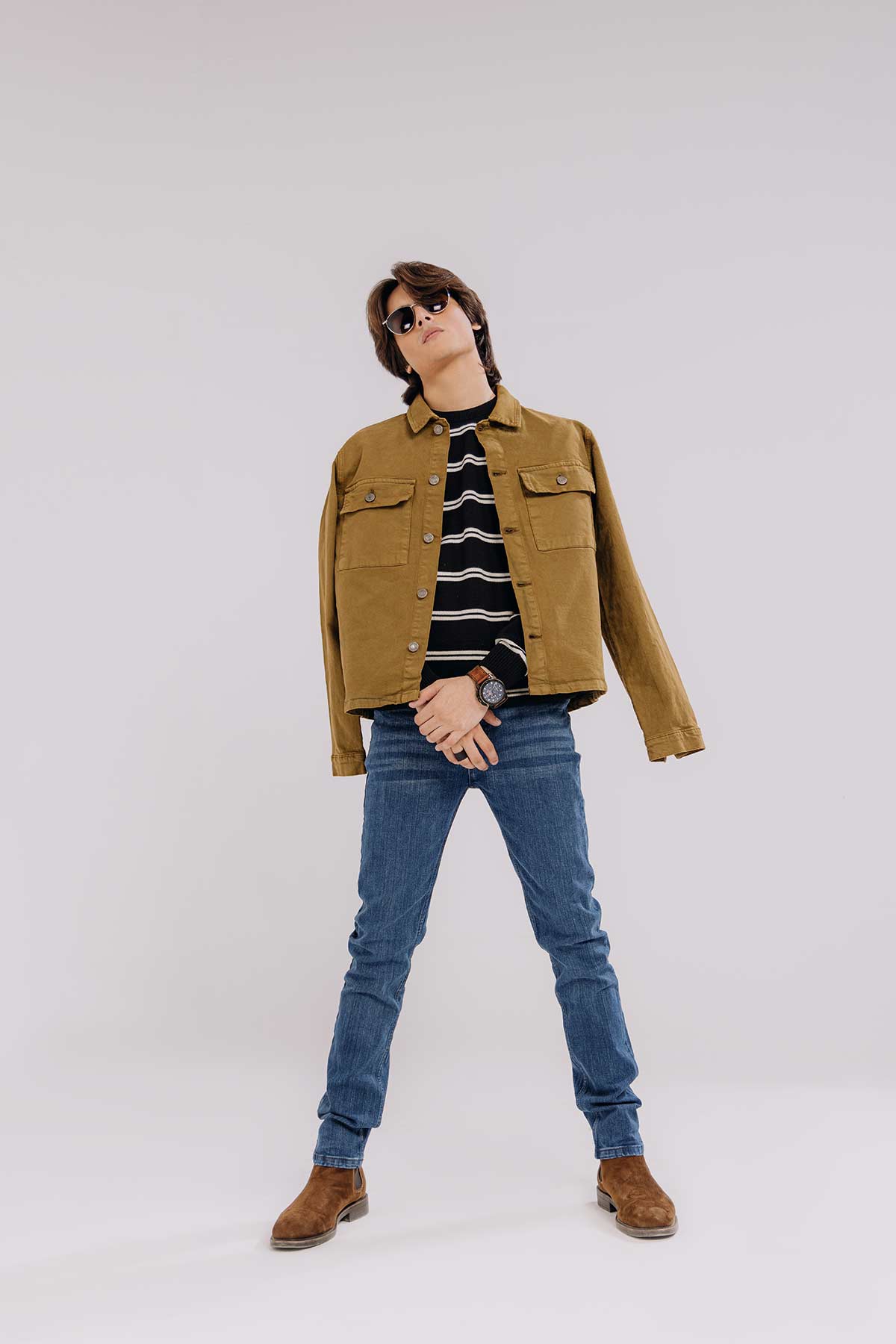 100% Cotton. Twill Shacket With Basic Collar And Long Sleeves. Front Patch Pockets With Flaps. Button On Each Sleeve Hem. Front Closure.