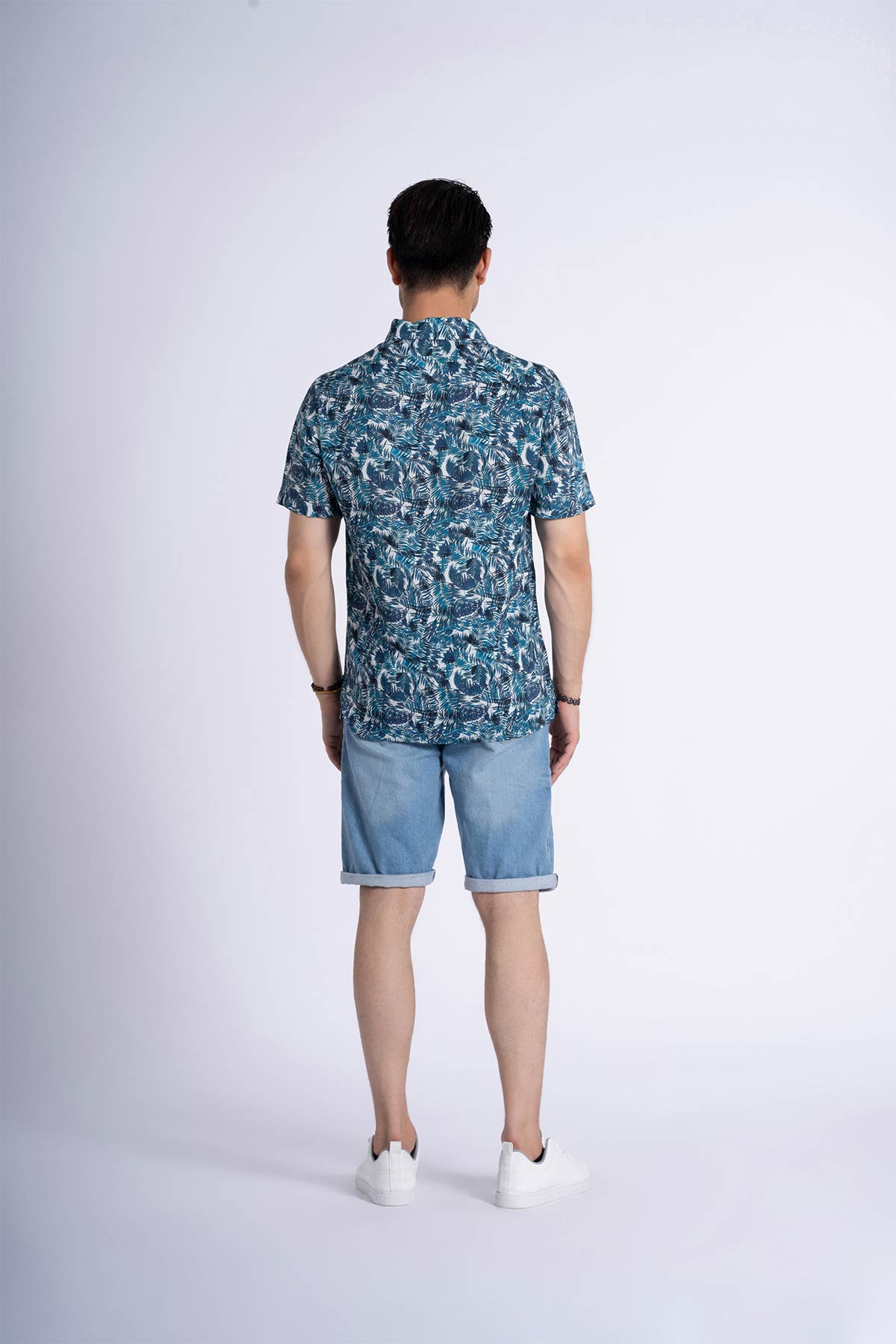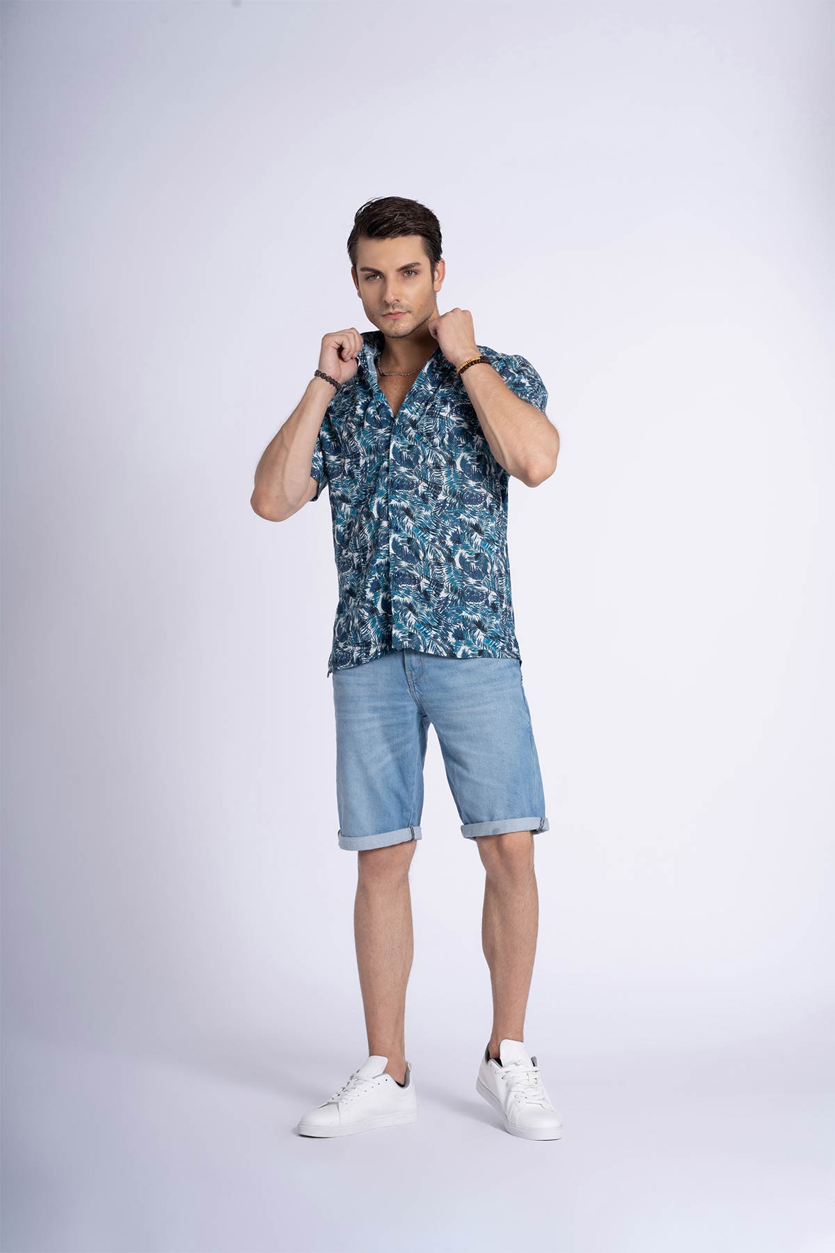 100% Viscose. Casual Printed Button Down Shirt Featuring Short Sleeves