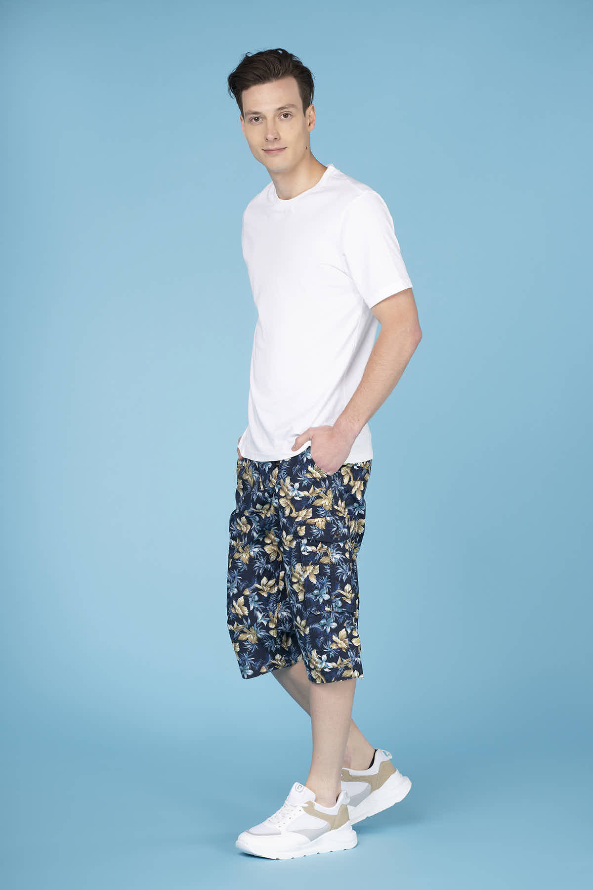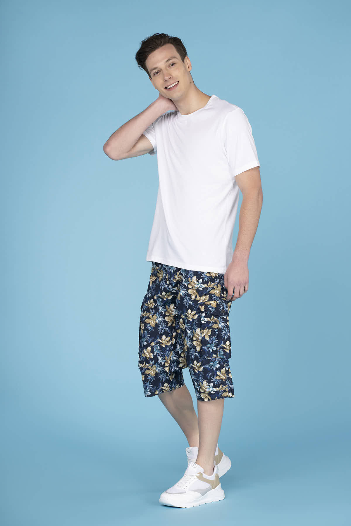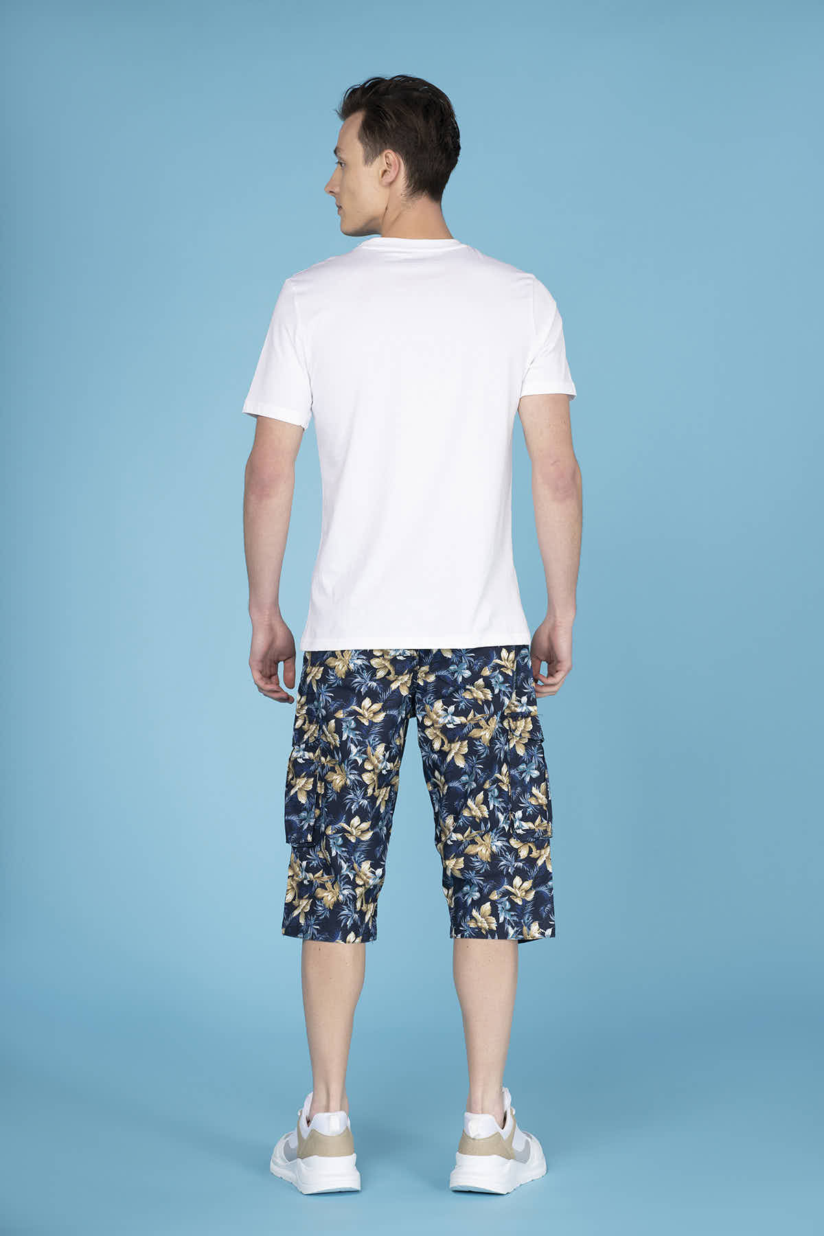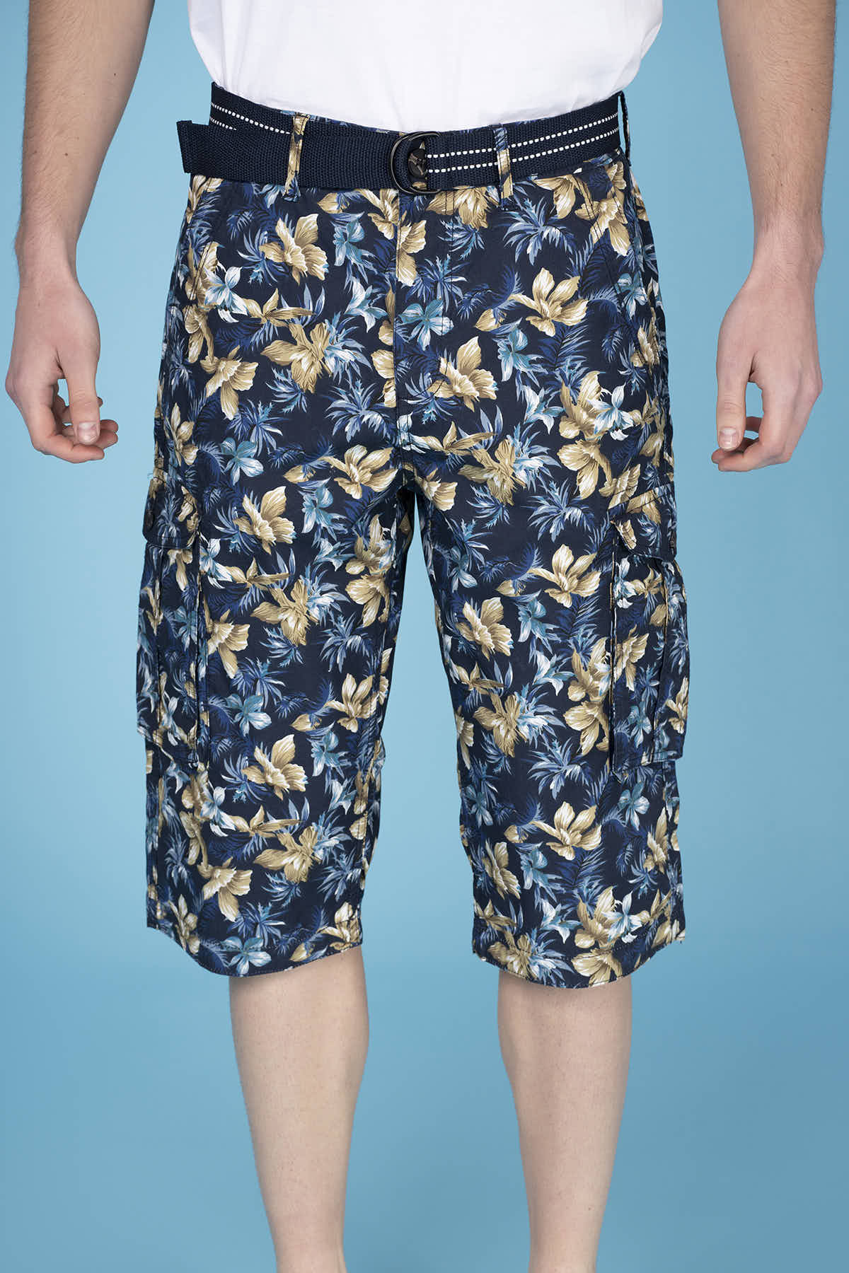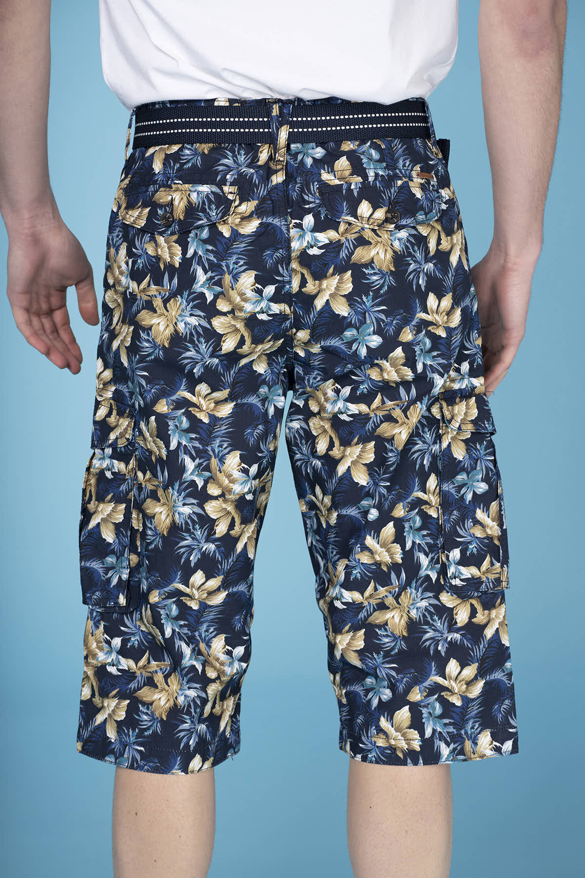 Comfortable And Classical Floral Print Bermuda Shorts With Detachable Belt Featuring Button Closure Waistband With Loops. Front Utility Pockets And Slash Pockets. Rear Flap Pockets. Straight Hem.