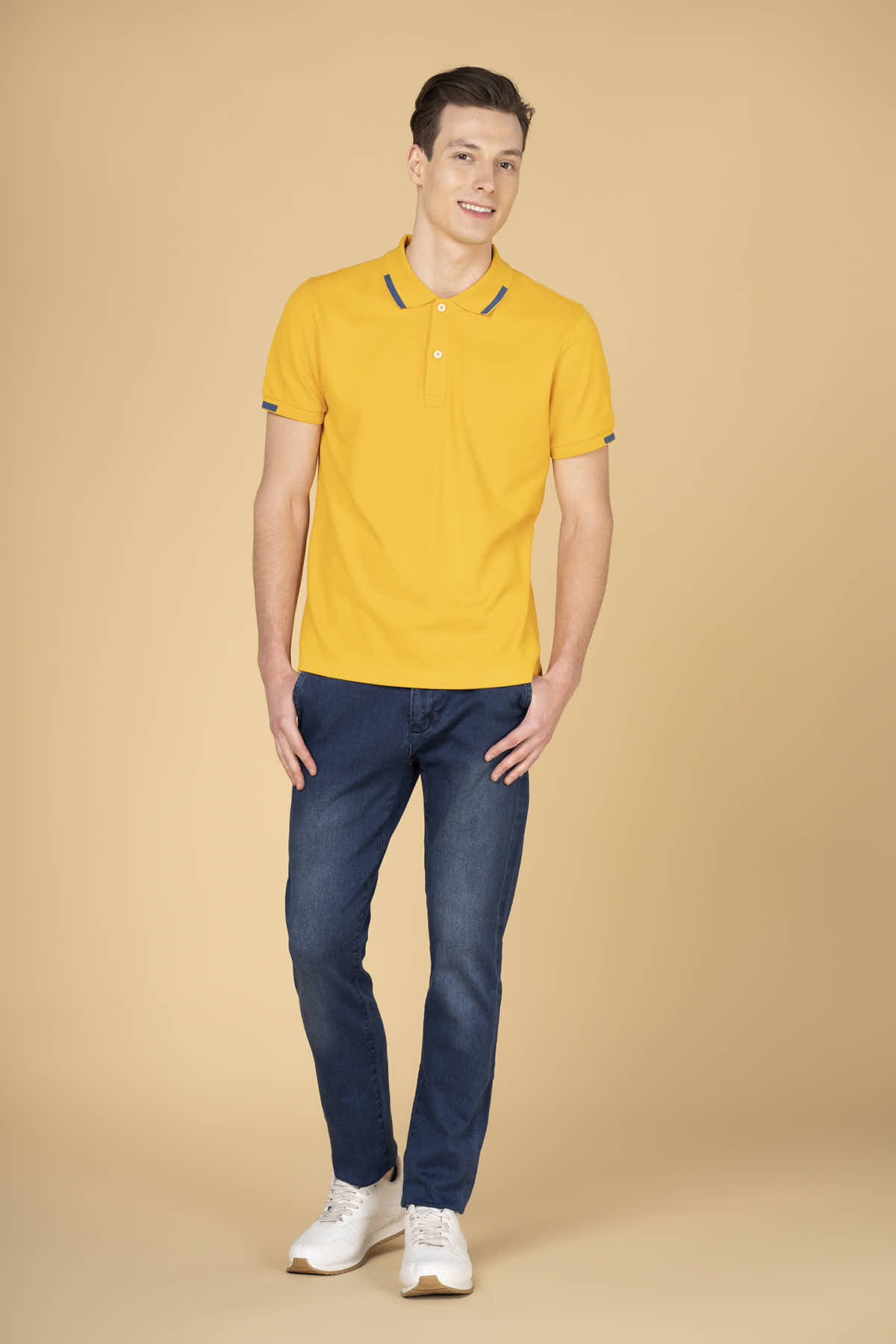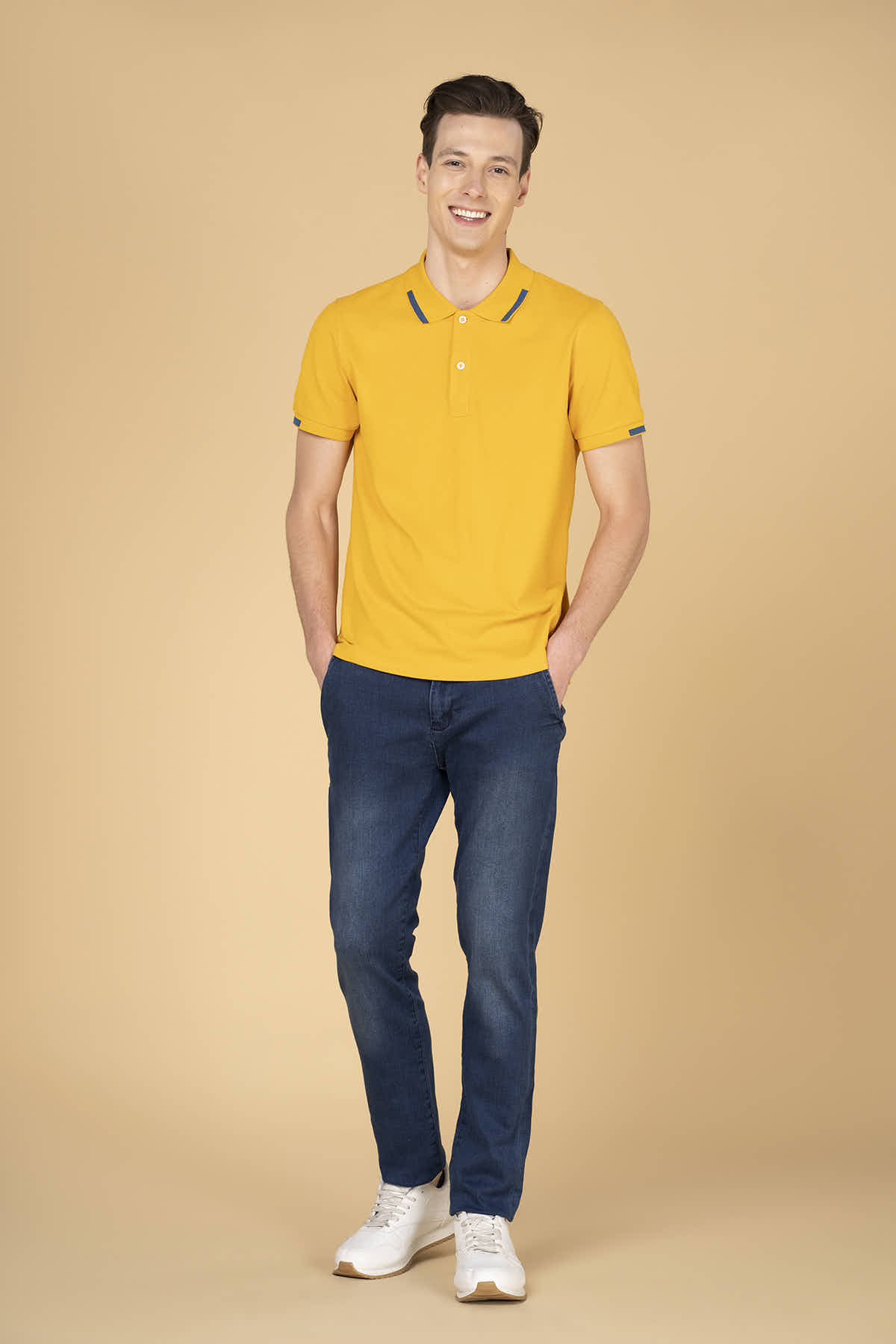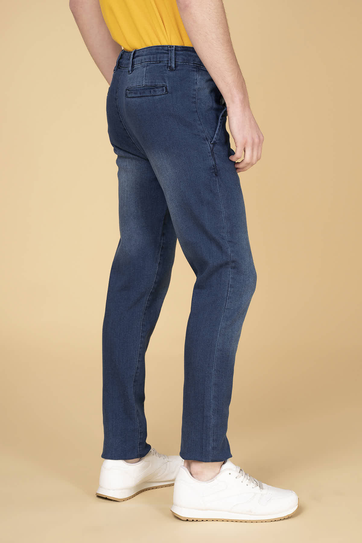 Classical Medium Wash Denim Jeans. Regular Waistband With Button And Loops. Slash Pockets. Rear Welt Pockets. Narrow Hem