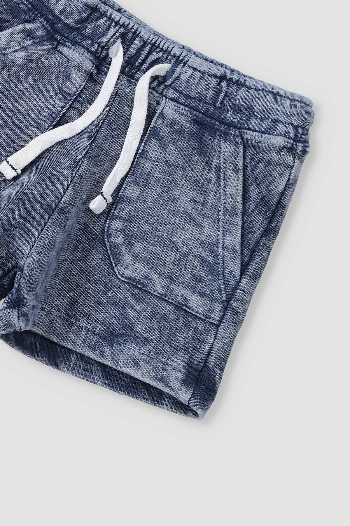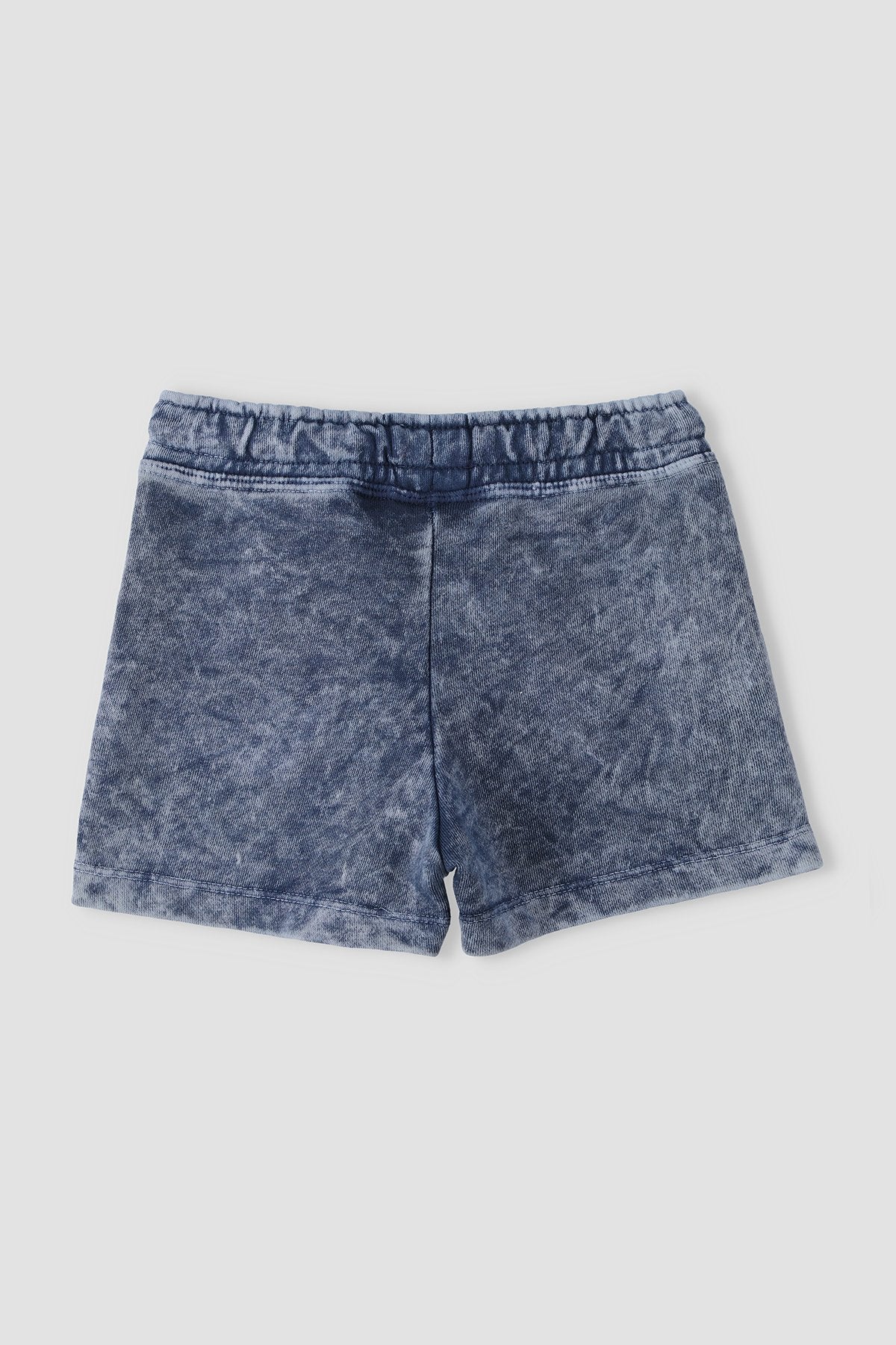 100% French Terry. Acid Wash Textured Daisy Shorts With Elasticated Waist And Adjustable Drawstring. Front Slash Pockets