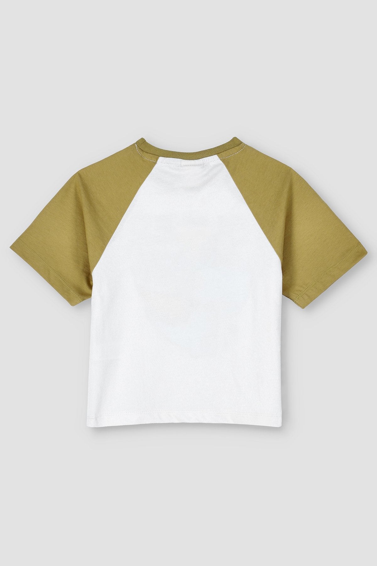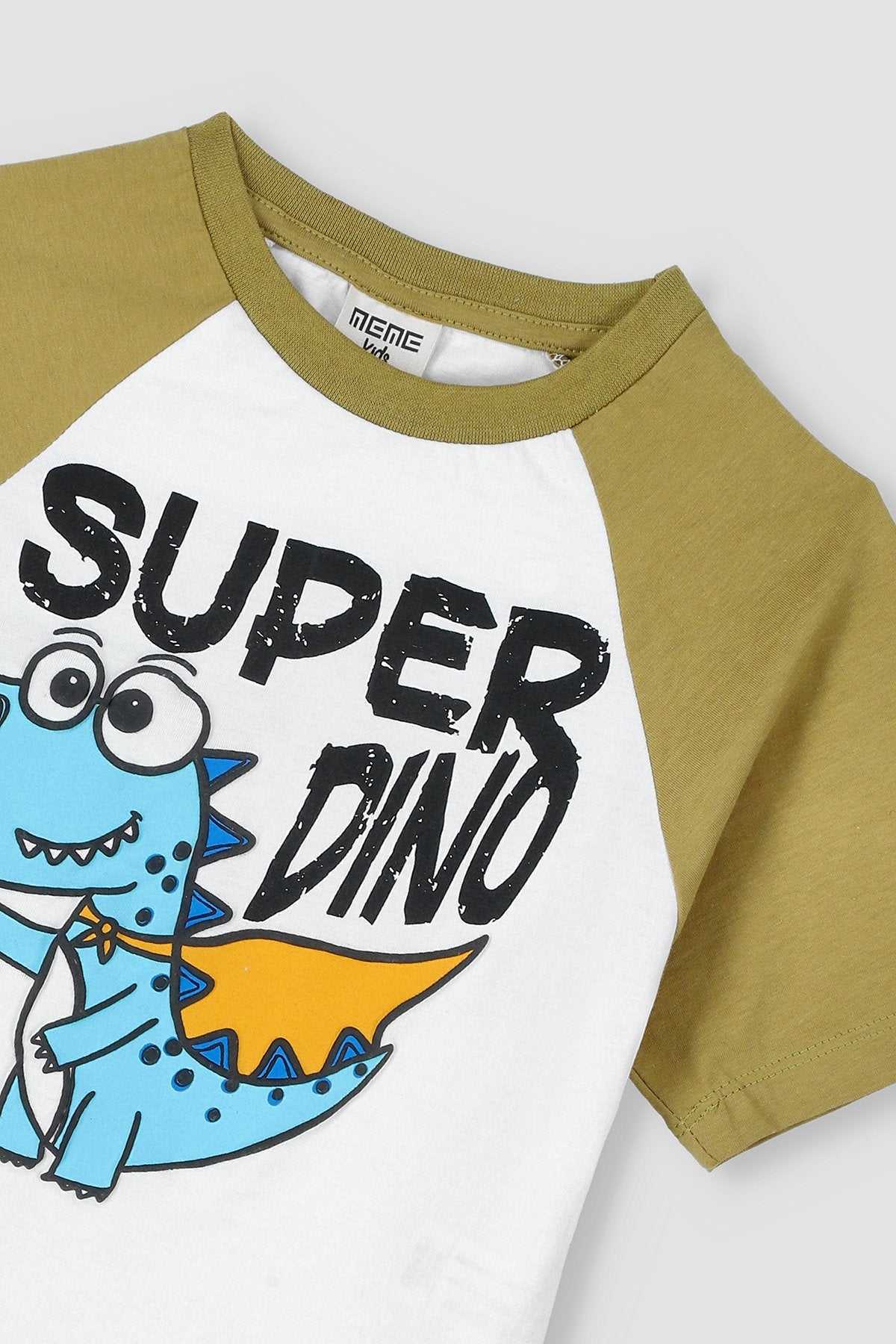 100% Cotton. Dino Print Reglan Short Sleeves T-Shirt With Crew Neck