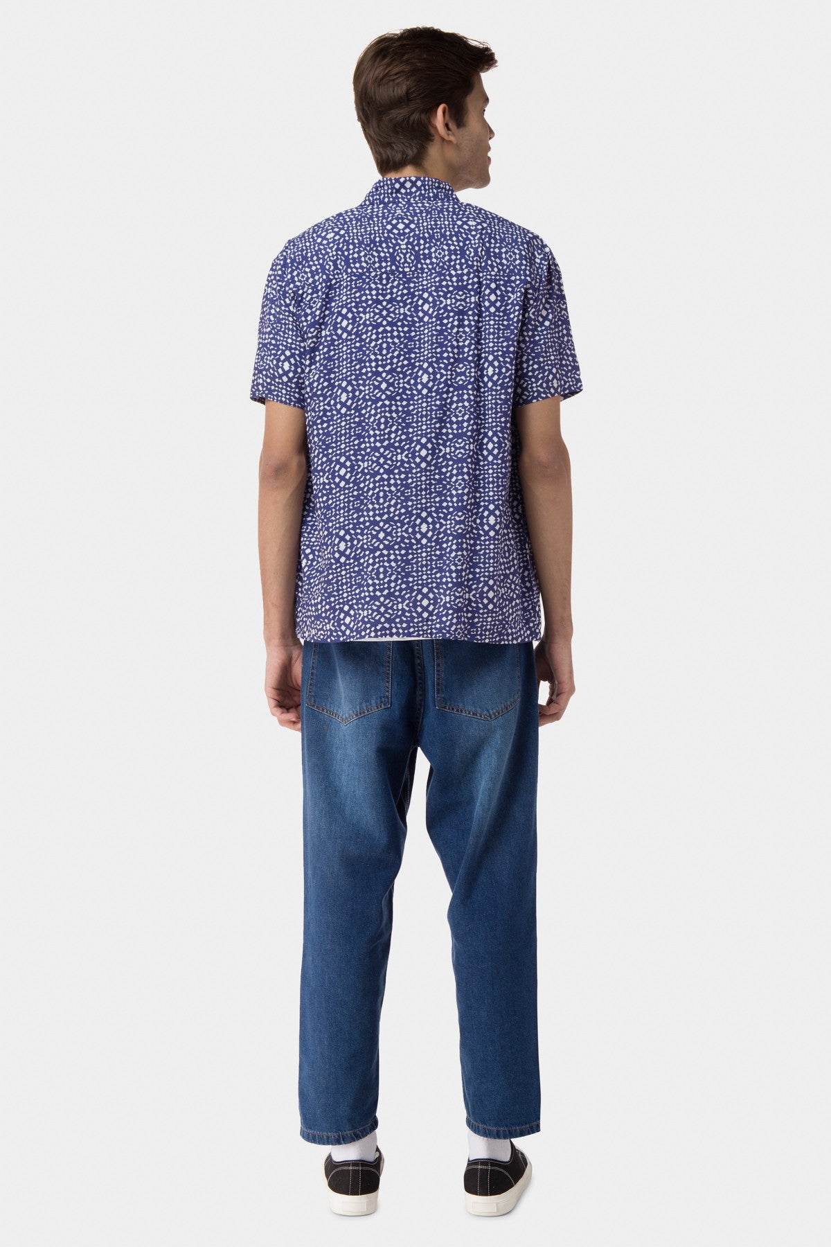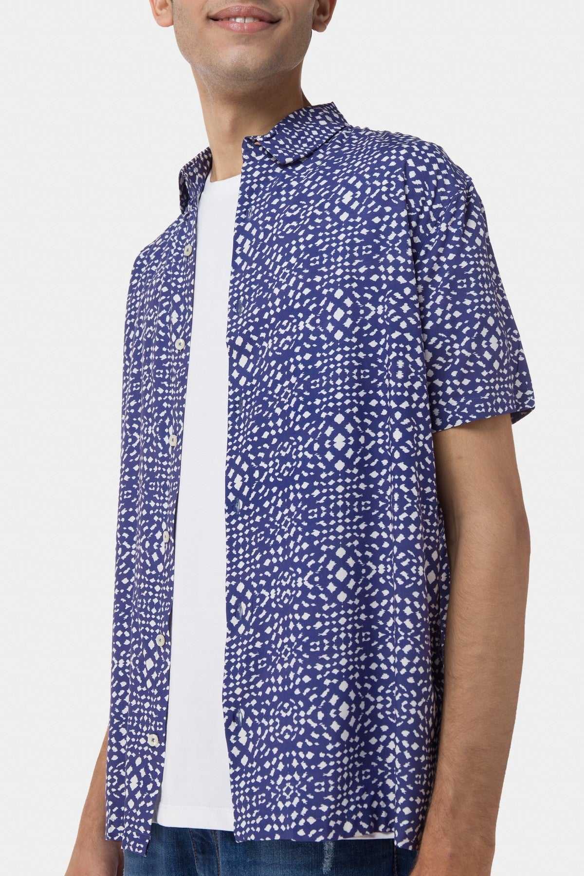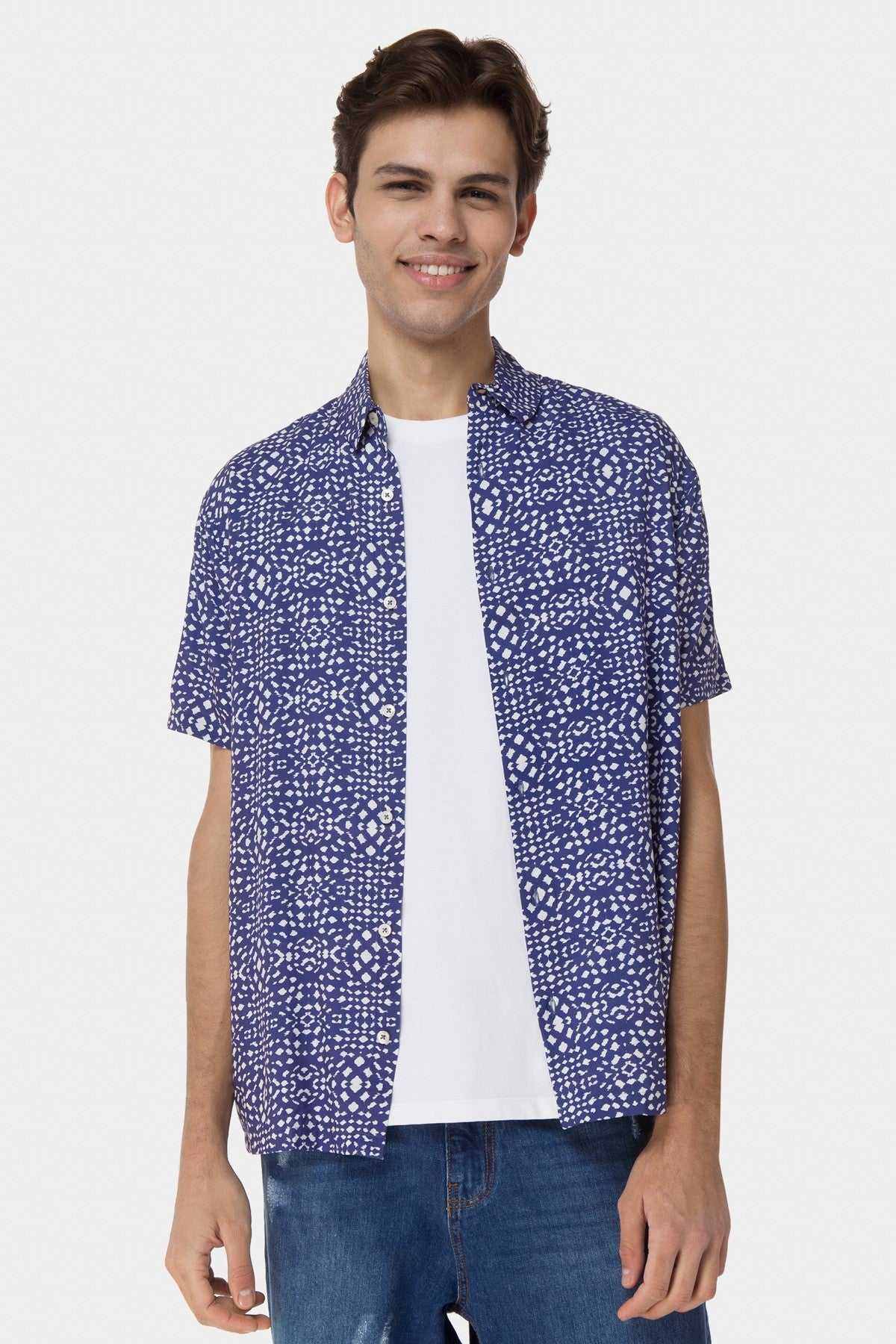 100% Viscose. Printed Button Up Collar With Short Sleeves.