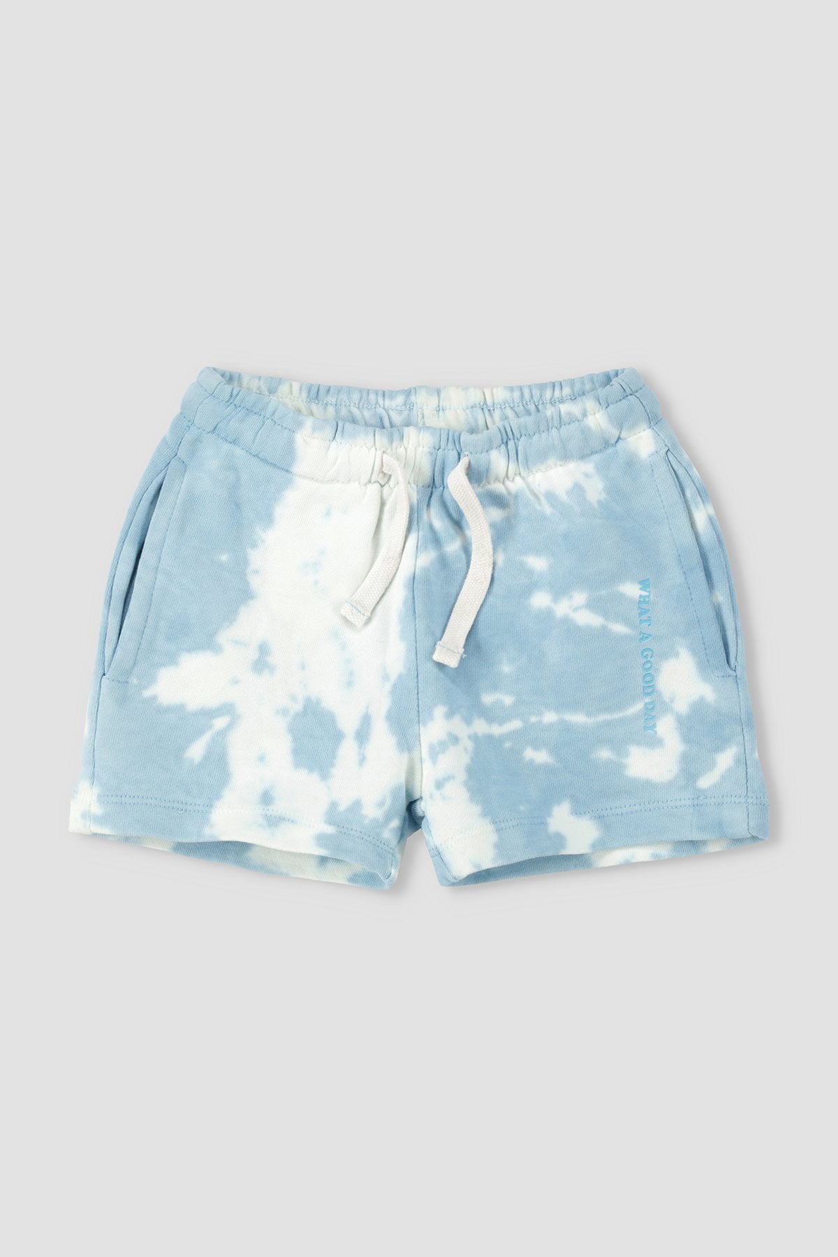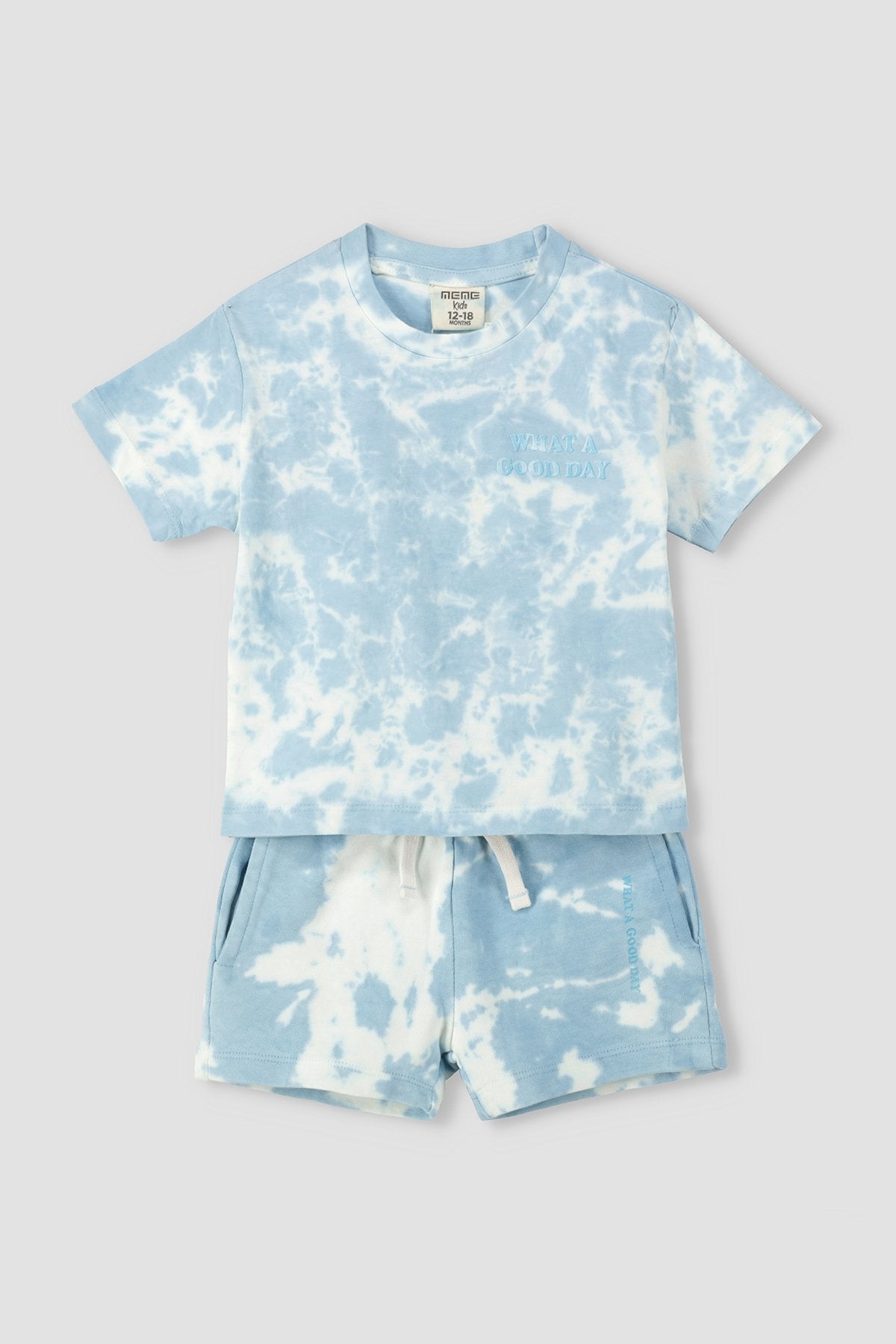 100% Cotton Jersey. Tie & Dye Print Set. Round Neck Short Sleeve T-Shirt. Shorts With Elastic Waist Band And Adjustable Front Drawstring. Front Pockets And Back Patch Pockets.