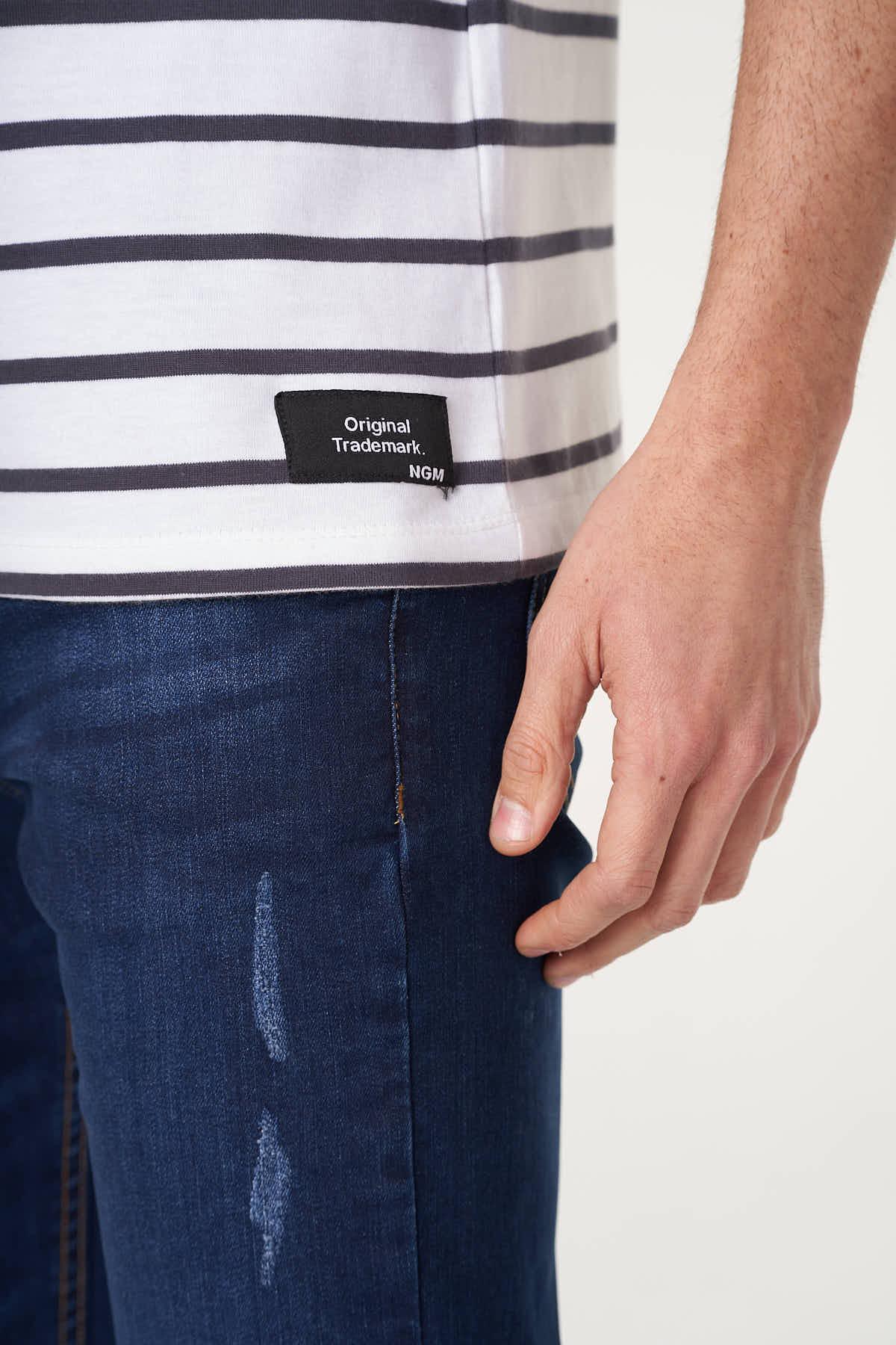 100% Cotton. Crew Neck With Short Sleeves. Patchwork On The Hem.