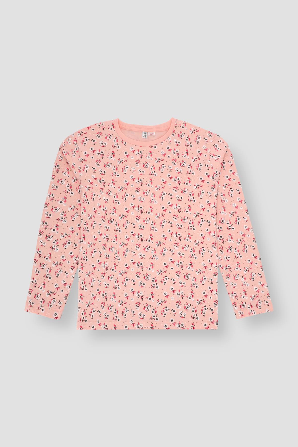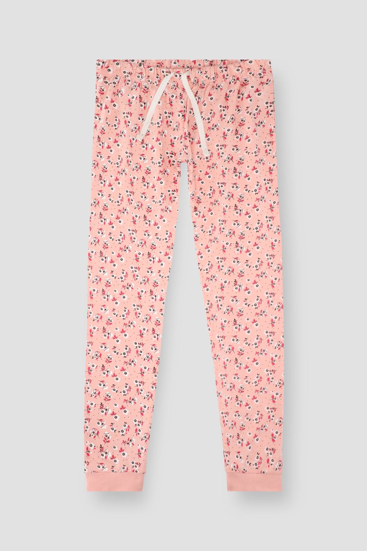 100% Cotton. Floral Printed Sleepwear Featuring Crew Neck Long Sleeves T-Shirt And Pjs With Drawstring