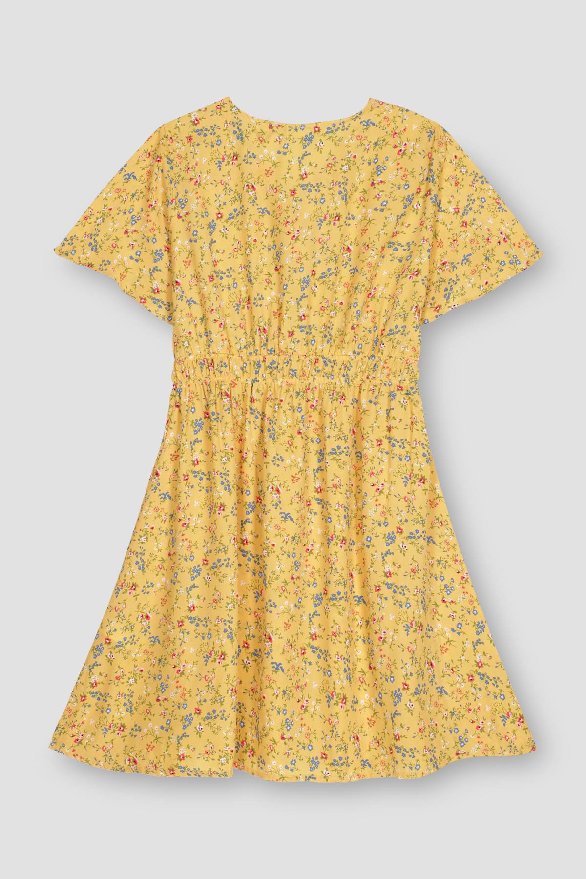 100% Polyester. Moss Crepe Flowy Vibrant Floral Midi Dress Featuring Surplice Neckline With Elasticated Waist. Flared Sleeves Ans Flounced Hem.
