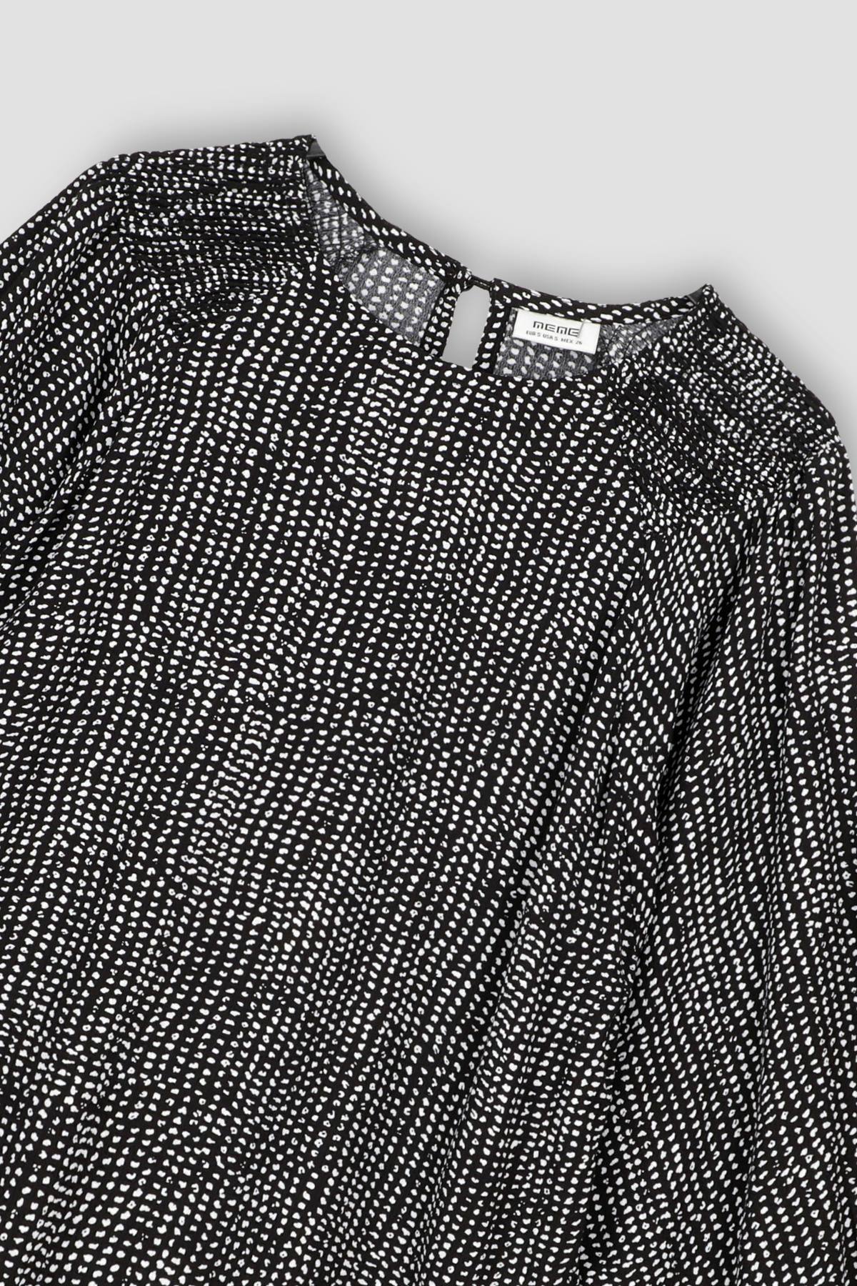 100% Polyester. Classic Flowy Monochromatic Blouse With Crew Neck Featuring Shoulder Ruching Details. Long Reglan Sleeves With Button Closure Cuff. Rear Keyhole Napeline. 5 Cm Sideseam Slit. Curved Hem