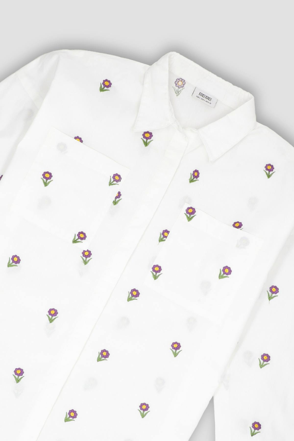 100% Cotton. Classic Pure Cotton Box Fit Floral Embroidered Button Down Shirt Featuring Basic Collar. Drop Shoulder With Puff Sleeves Featuring Button Closure Cuff. Straight Hem