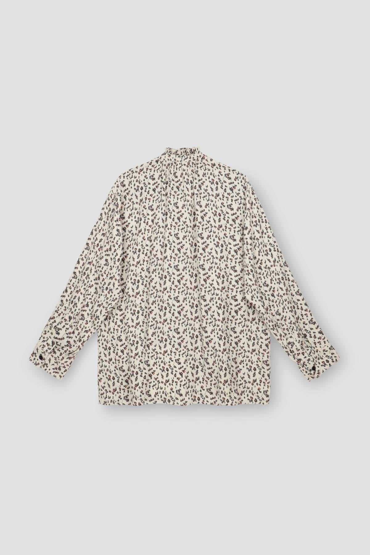 100% Blended. Moss Crepe Classic Smart Casual Flowy Leopard Print Button Down Shirt Featuring Basic Collar. Long Sleeves With Button Closure Cuff. Straight Hem
