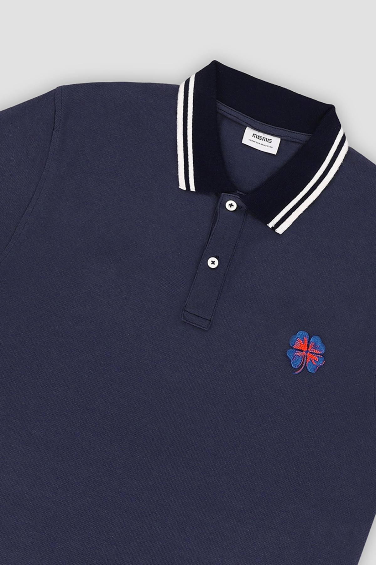 100% Cotton. Classic Smart Casual Polo Shirt Featuring Regular Colorblock Ribbed Collar And Short Sleeves. Chest Floral Embroidery