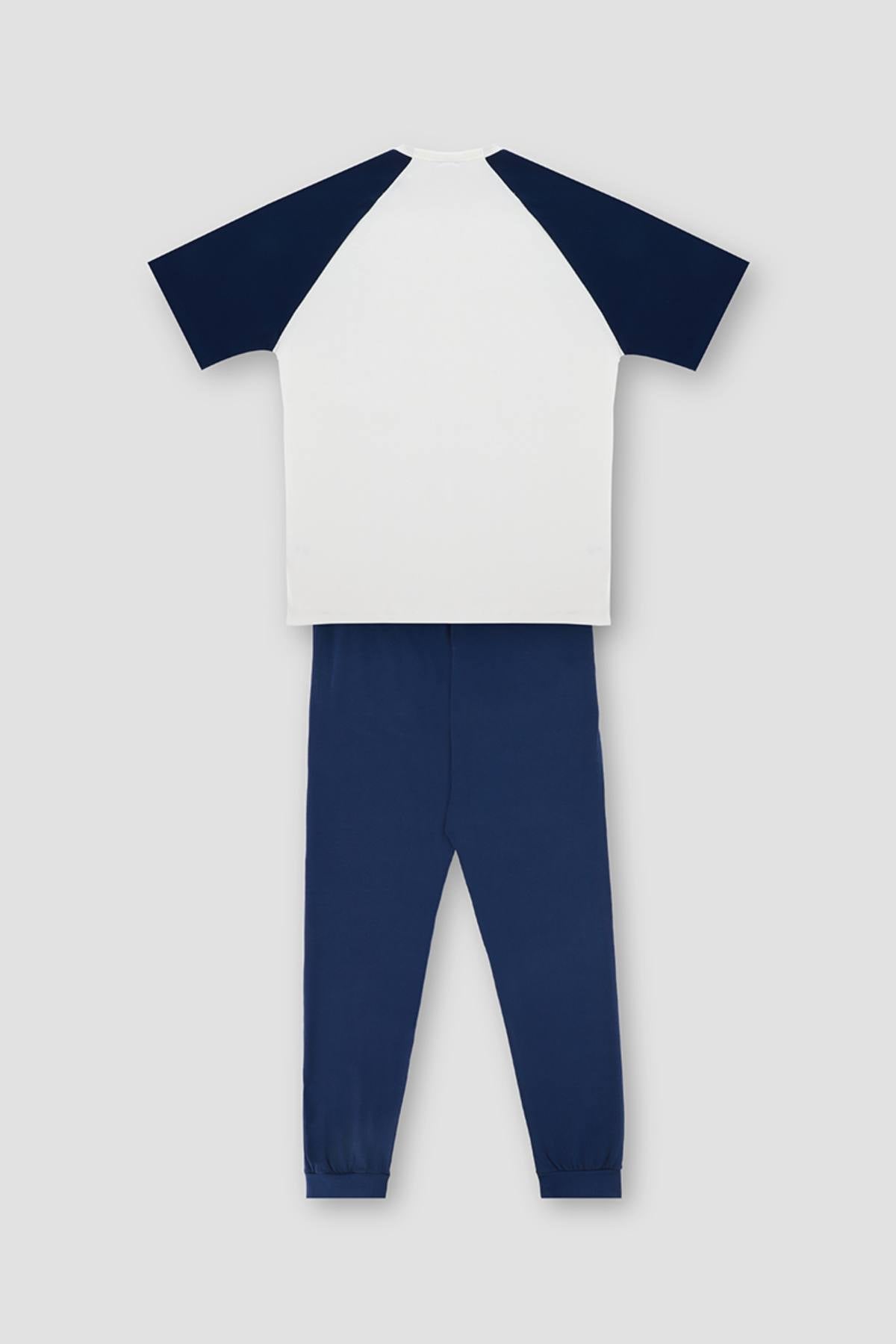100% Cotton. Two Piece Pj Set. Crew Neck T-Shirt Featuring Short Reglan Sleeves And Front Typography With Pjs Featuring Elasticated Waistband With Drawstring. Perfect Must-Have Wardrobe Item For Lounging As Sleep As Well