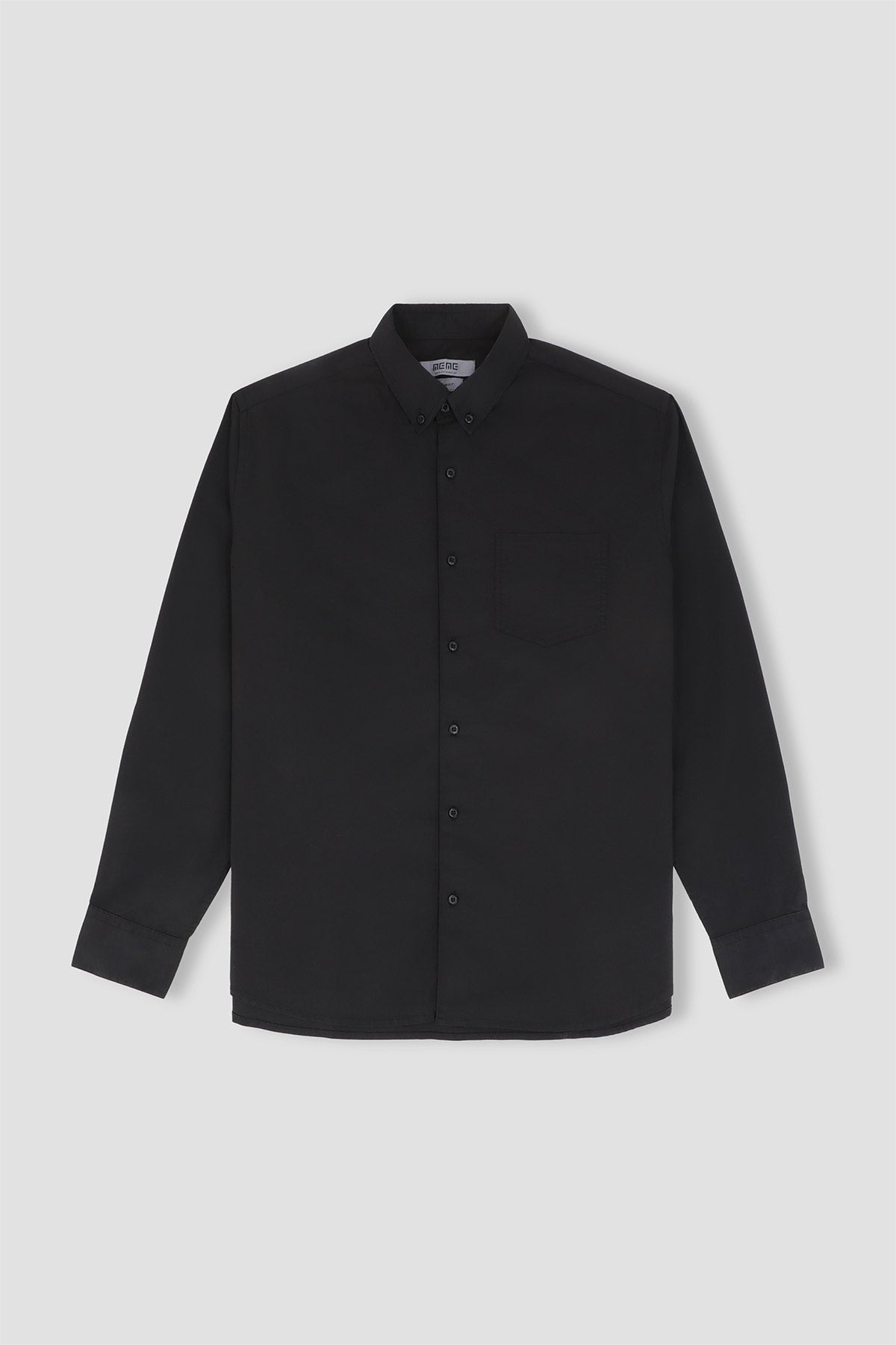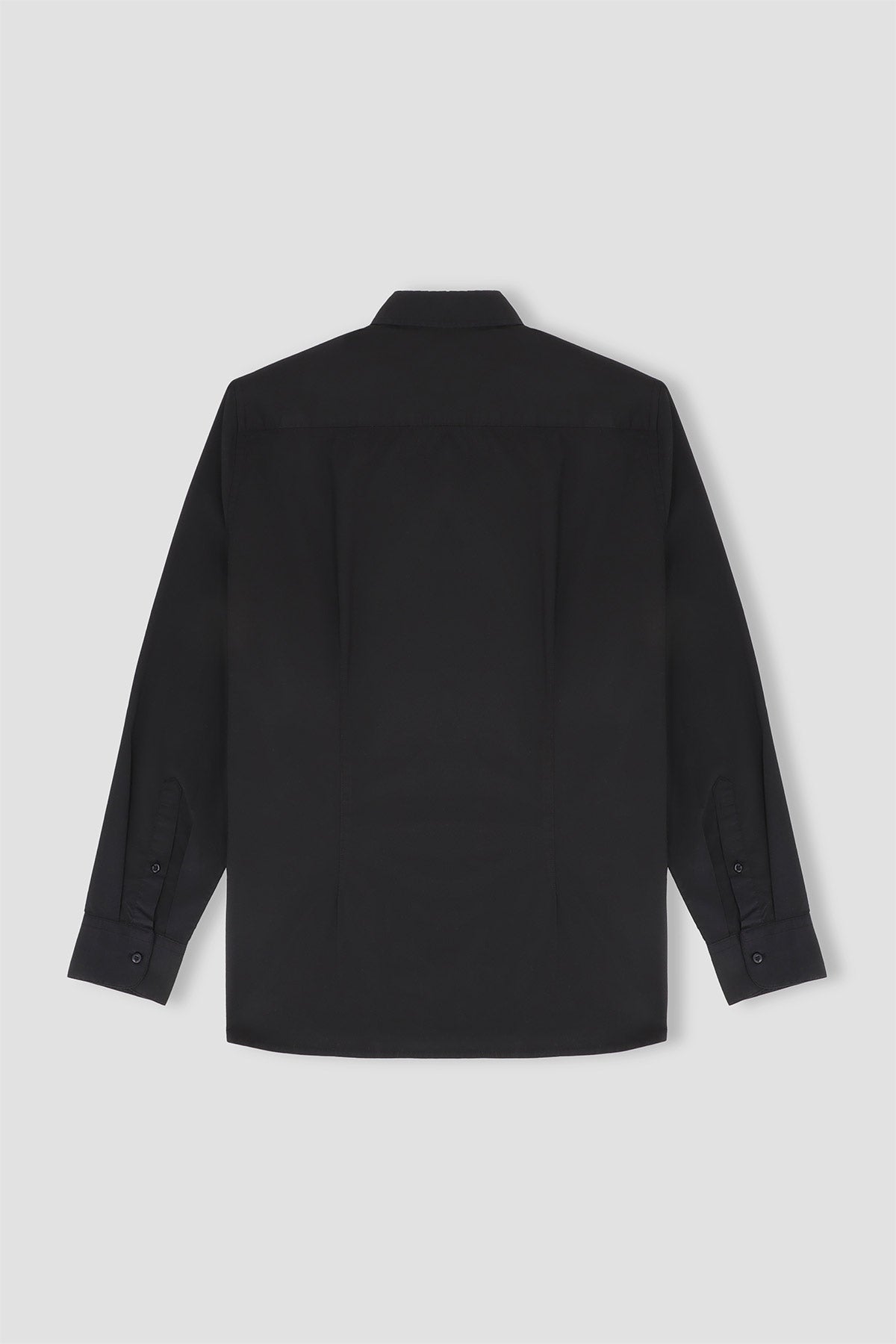 Poly Cotton. 65% Cotton 35% Polyester. Slim Fit. Classic Solid Button Down Shirt. Basic Collar .Long Cuffed Sleeves. Single Chest Patch Pocket.